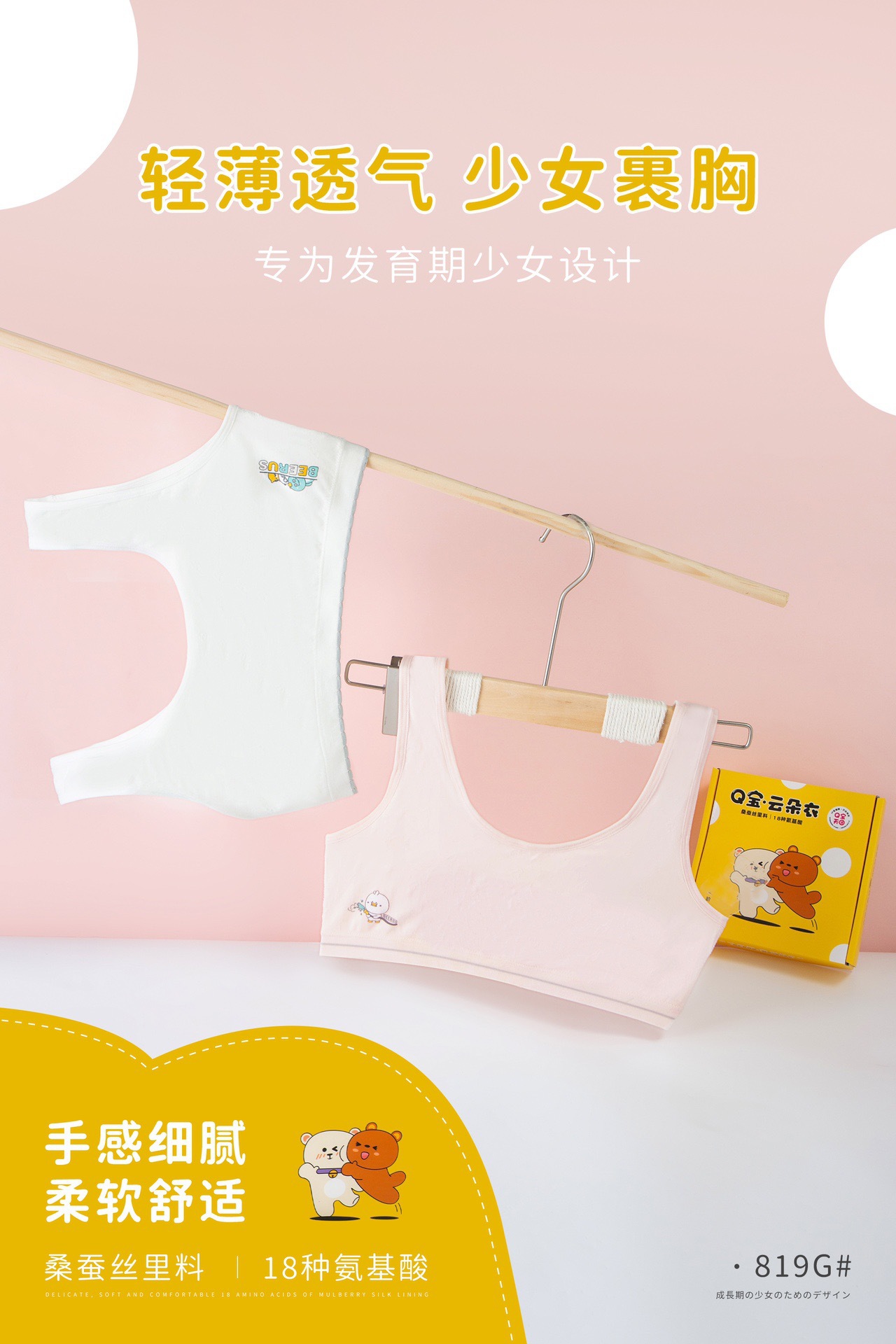 여자 발달 단계 I 클래스 A 안티 범프 실크 속옷 여자 중학교 학생을위한 통기성 정균 브래지어 작은 등스토어 가기