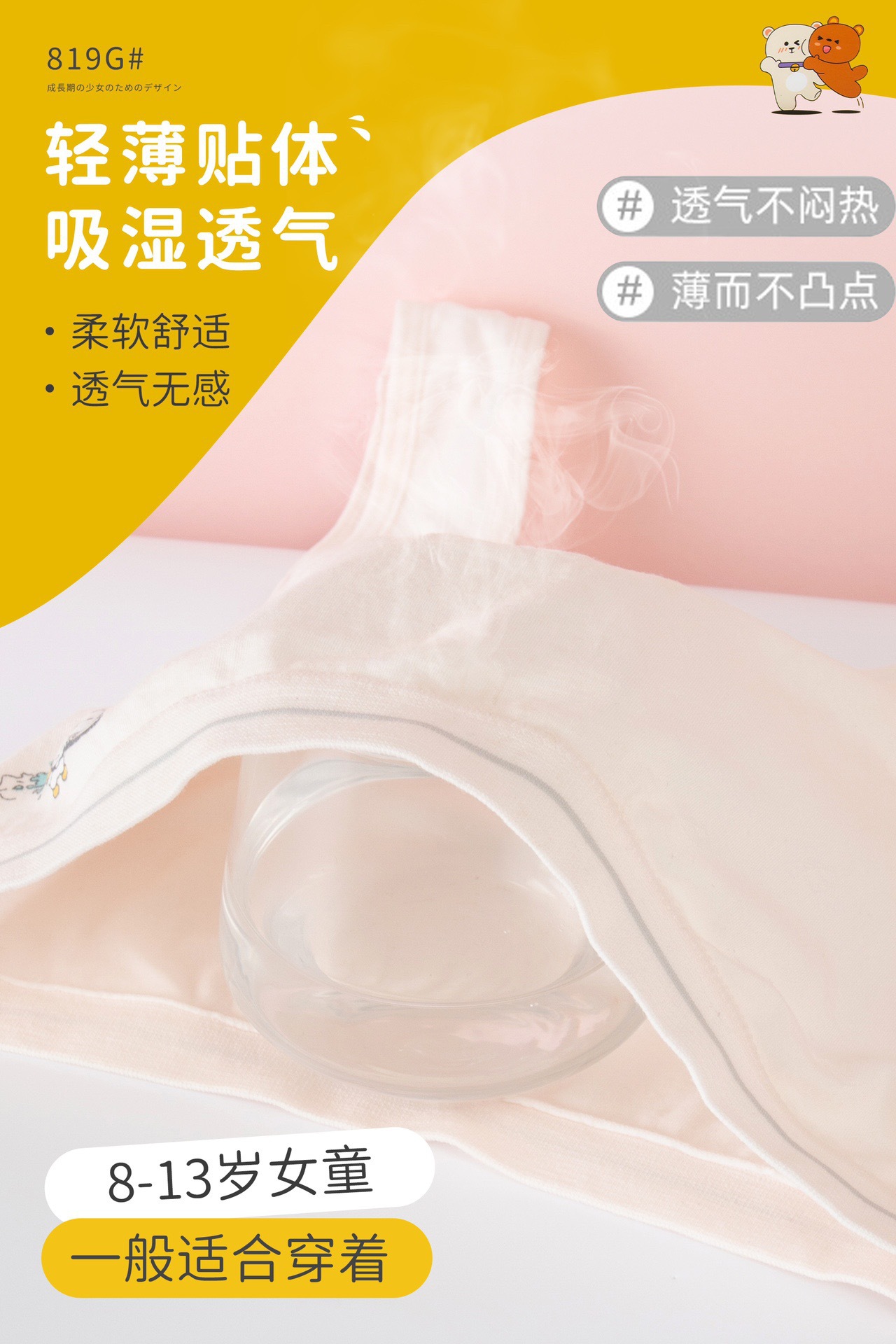 여자 발달 단계 I 클래스 A 안티 범프 실크 속옷 여자 중학교 학생을위한 통기성 정균 브래지어 작은 등