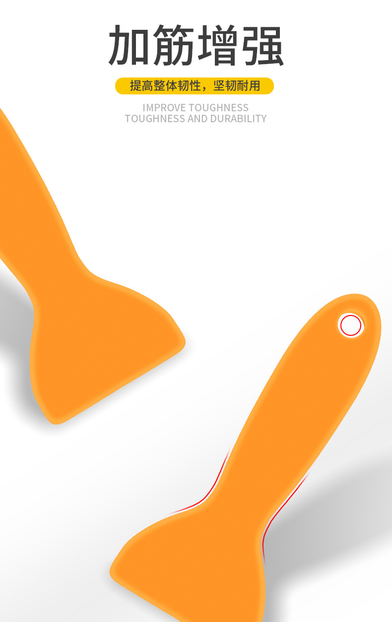 공장 도매 자동차 필름 도구 작은 노란색 삽 플라스틱 삼각형 스크레이퍼 다기능 접착제 및 서리 제거 소형 스크레이퍼스토어 가기