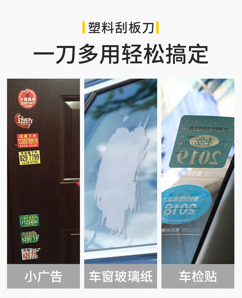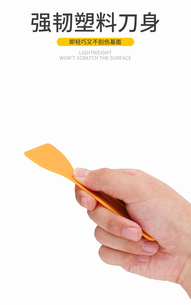 공장 도매 자동차 필름 도구 작은 노란색 삽 플라스틱 삼각형 스크레이퍼 다기능 접착제 및 서리 제거 소형 스크레이퍼