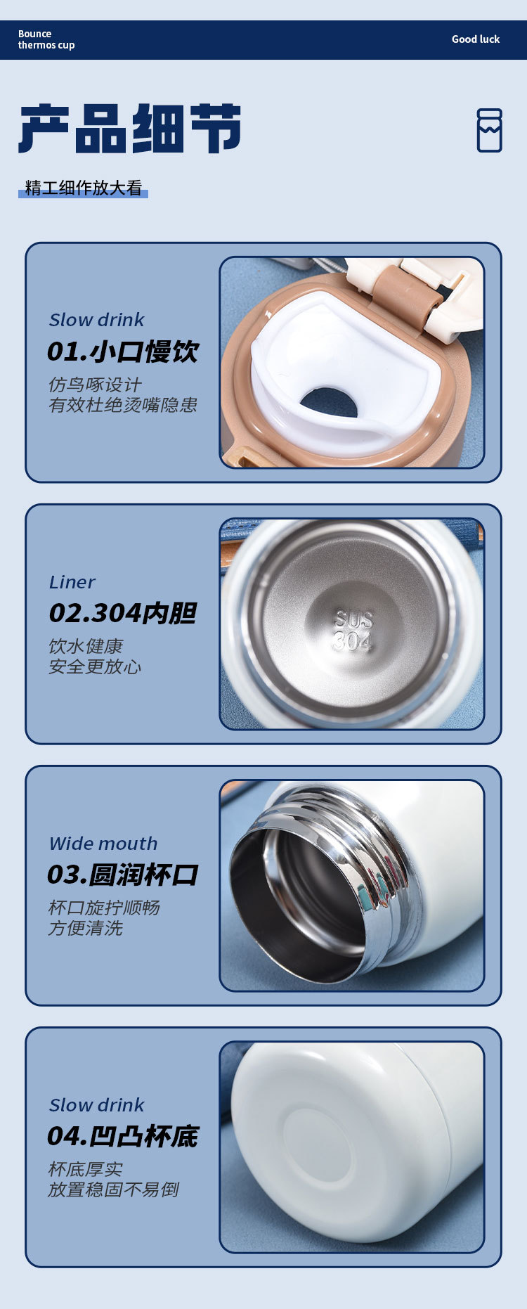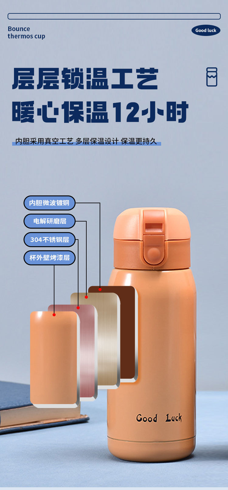 GoodLcuk 귀여운 소형 미니 보온병 컵, 멋진 남성과 여성 학생 휴대용 바운스 포켓 컵 도매