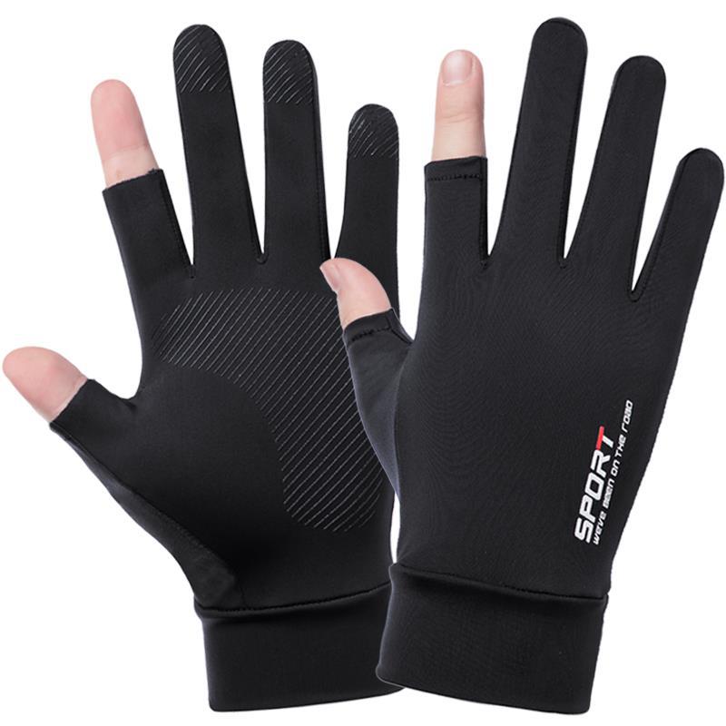 아이스 실크 장갑 남성용 여름 선 스크린 미끄럼 방지 통기성 운전 야외 스포츠 낚시 이슬 두 손가락 아이스 실크 장갑