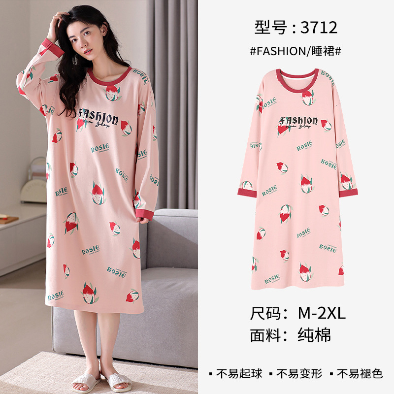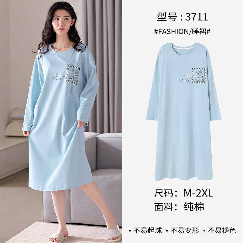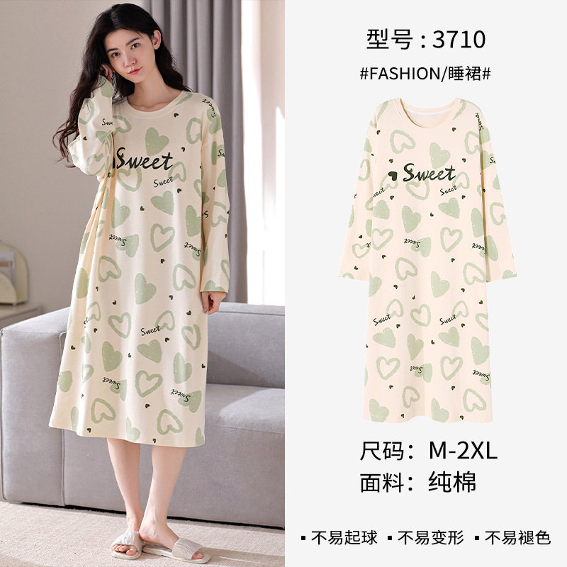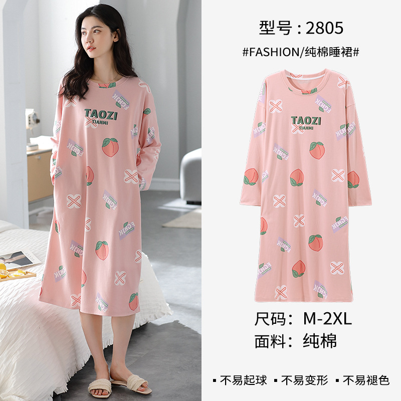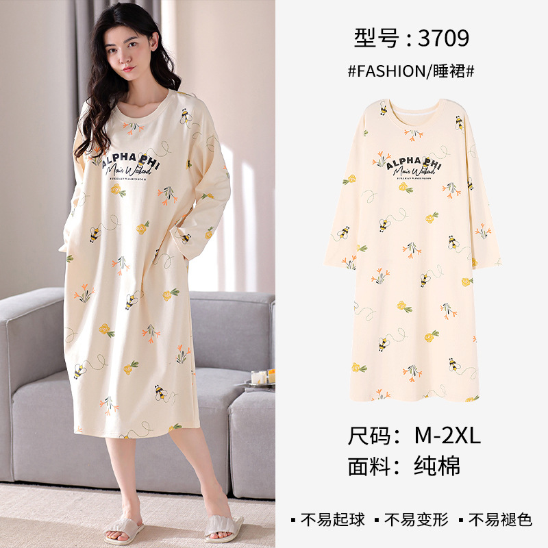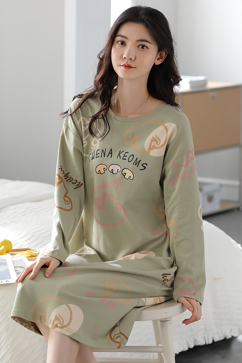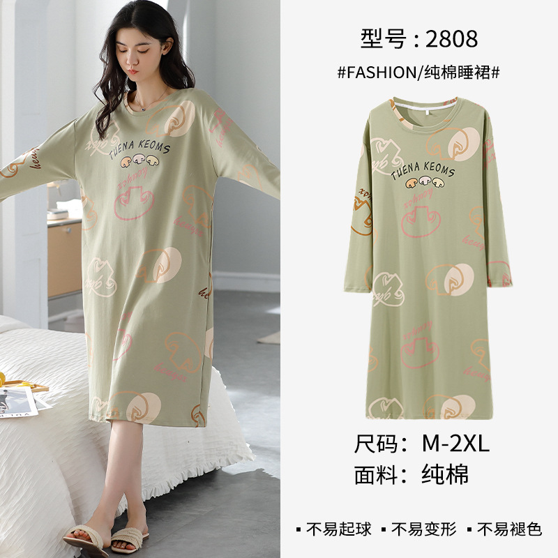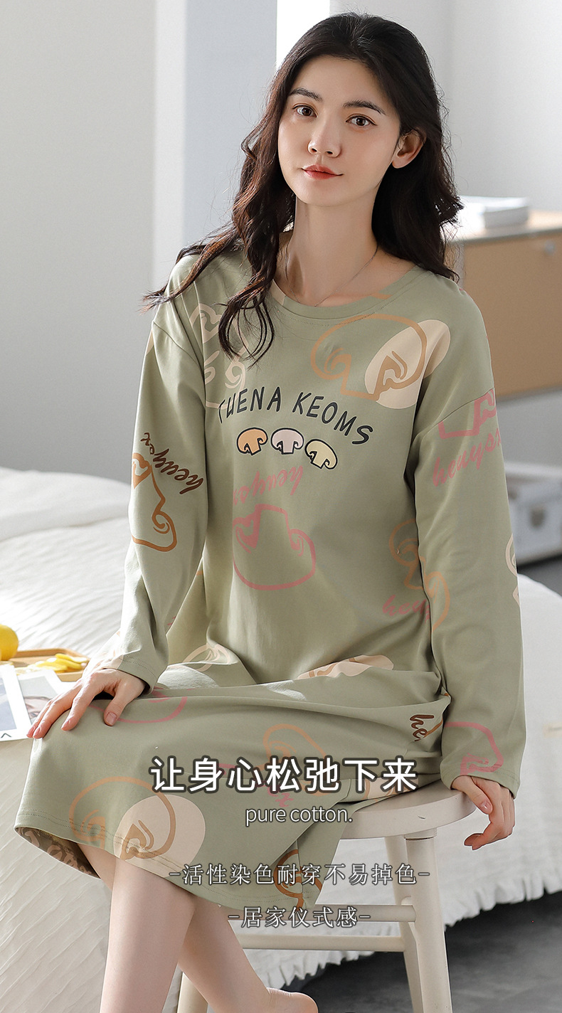 면 잠옷 새로운 긴팔 원피스 면 편안한 느슨한 플러스 사이즈 봄과 가을 원피스 아웃웨어 가정 의류 여성스토어 가기