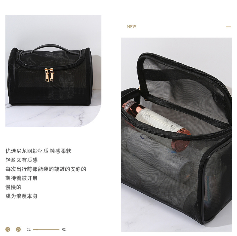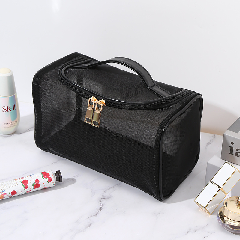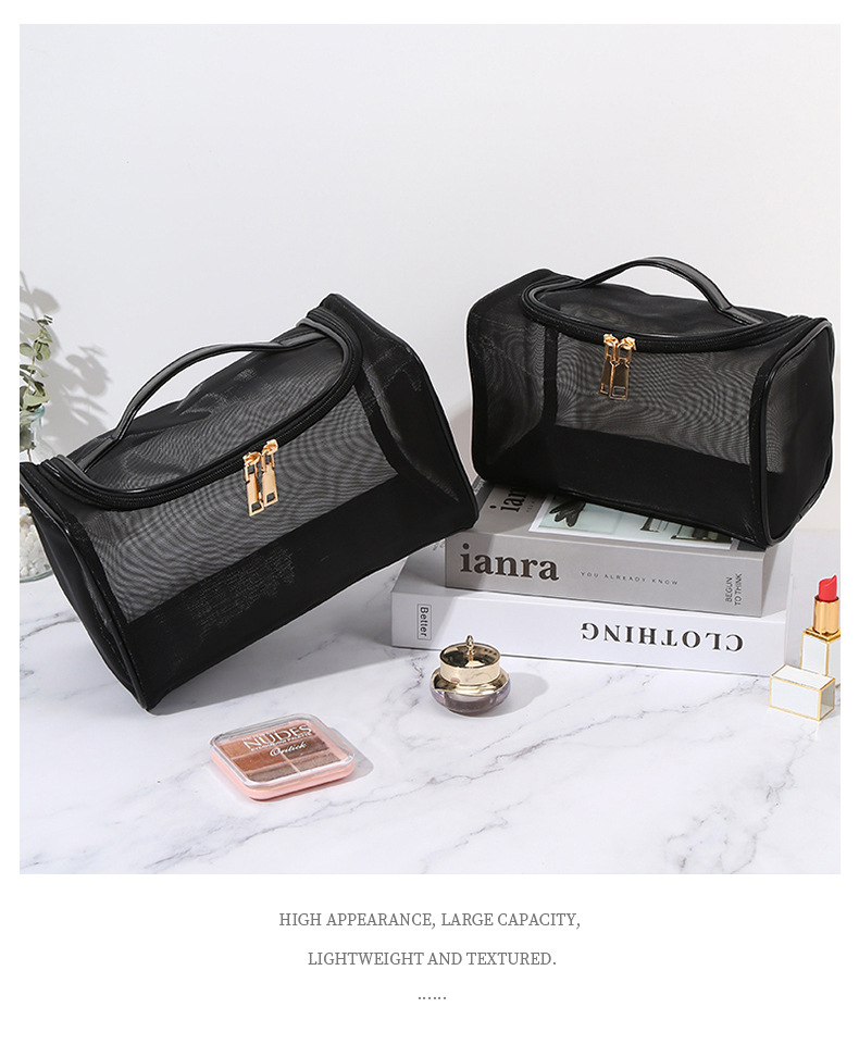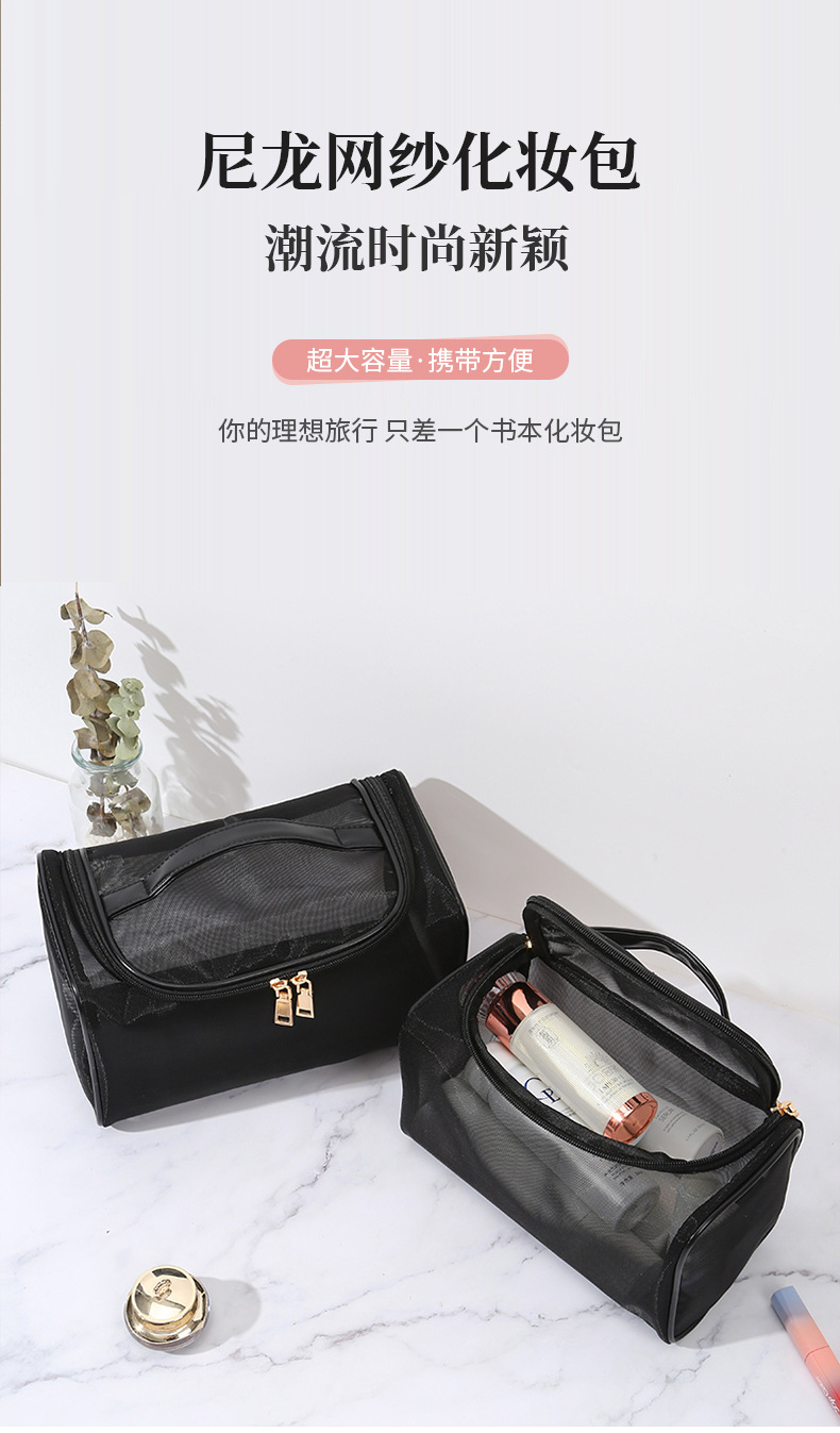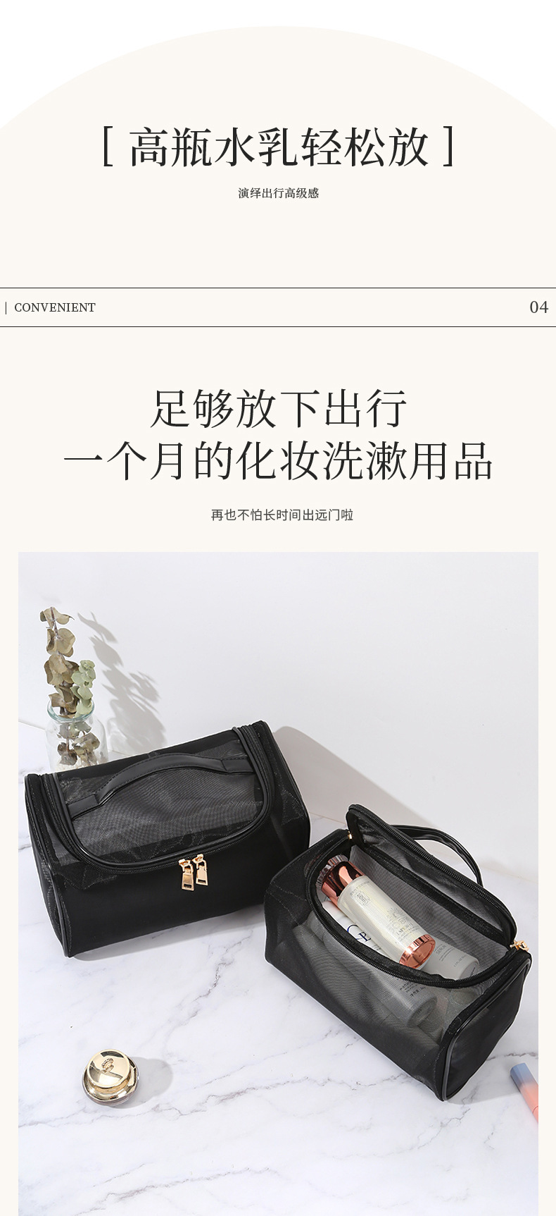 새로운 투명 메쉬 화장품 가방, 대용량, 간단하고 편리한 휴대용 세면 용품 가방, 휴대용 화장품 보관 가방