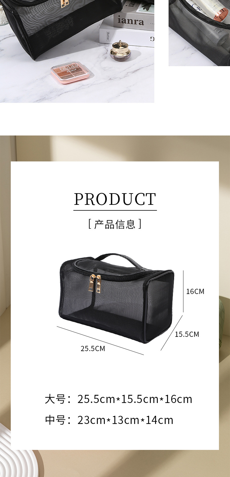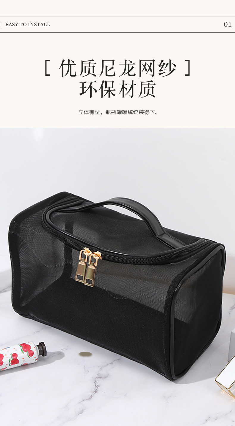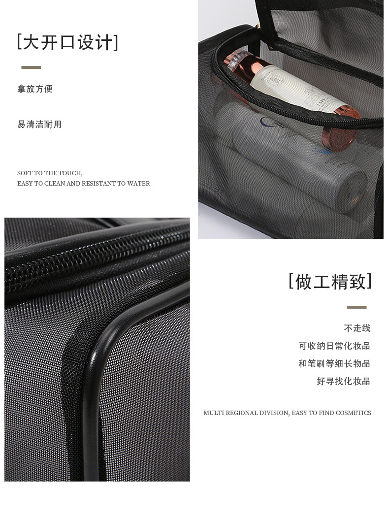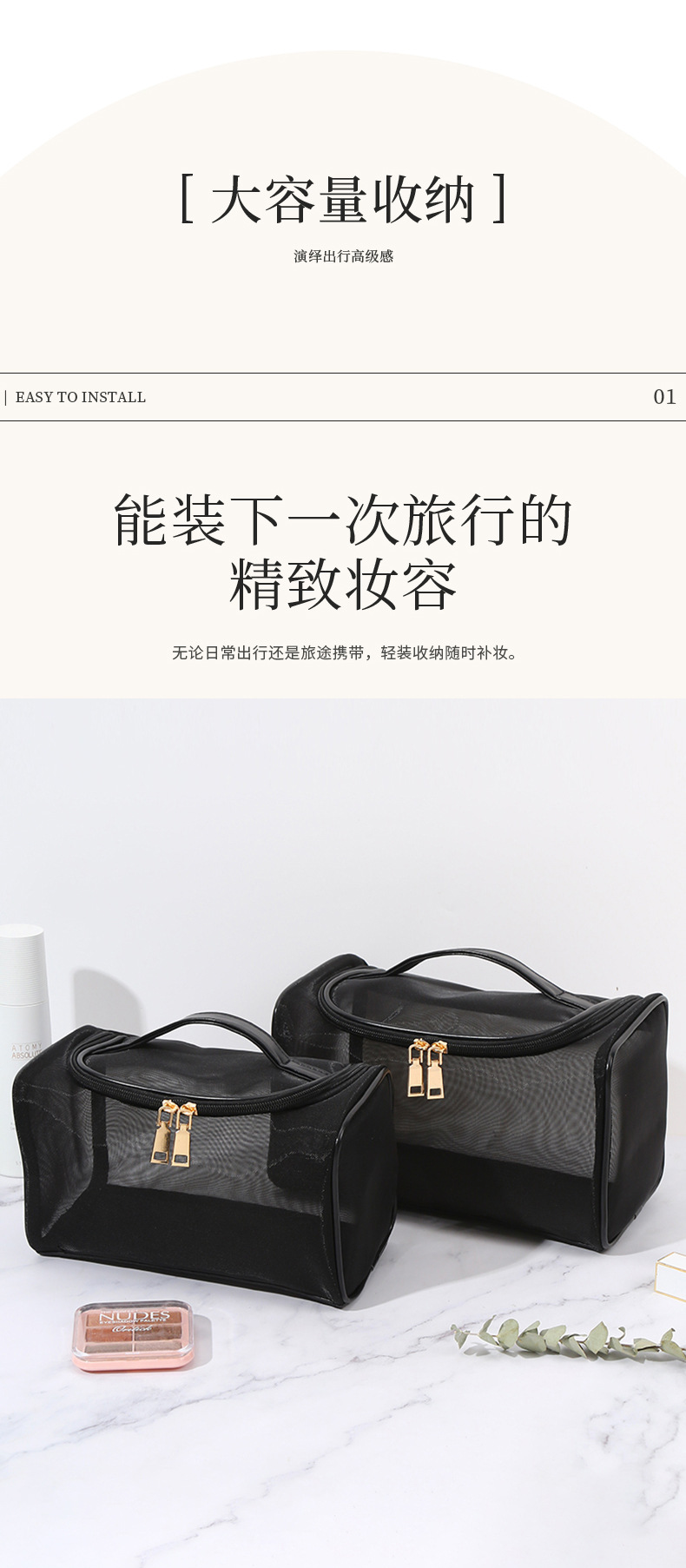 새로운 투명 메쉬 화장품 가방, 대용량, 간단하고 편리한 휴대용 세면 용품 가방, 휴대용 화장품 보관 가방