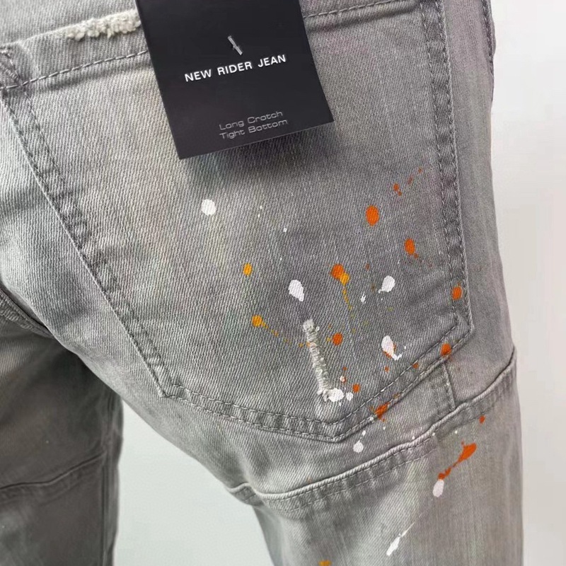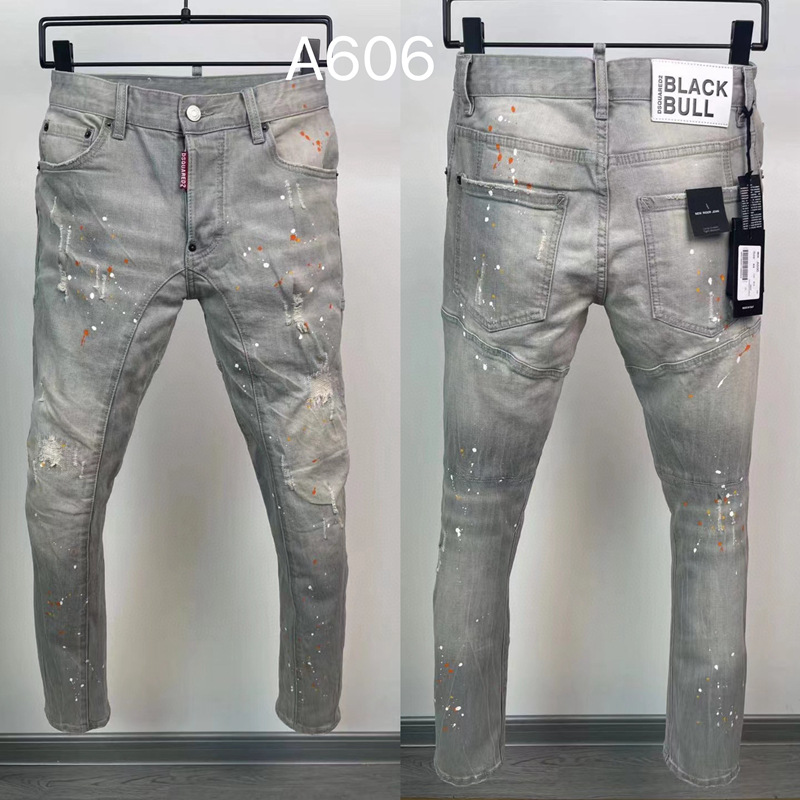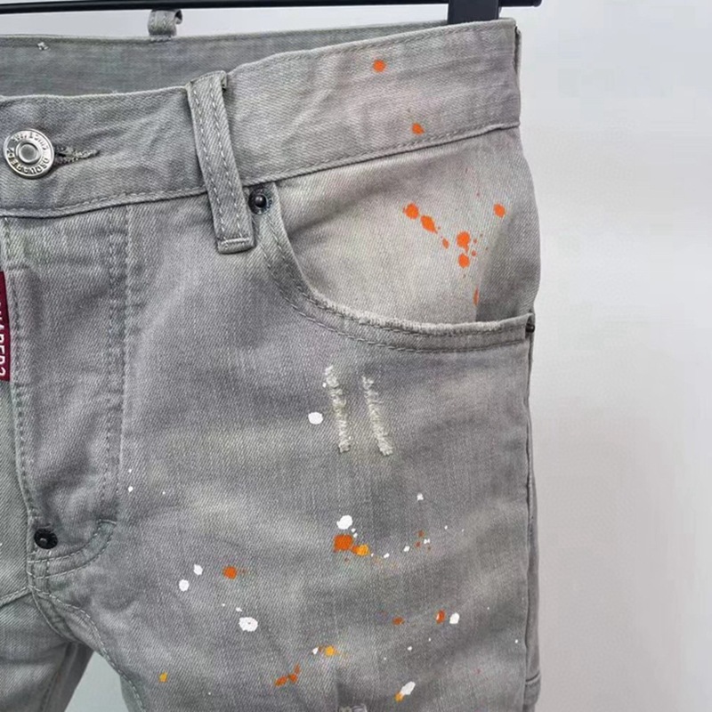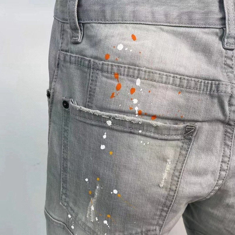 A606 잉크 도트 맞춤형 D2 신작 남성 바지 찢어진 화이트 진 슬림 스몰 스트레이트 크로스보더 청바지스토어 가기