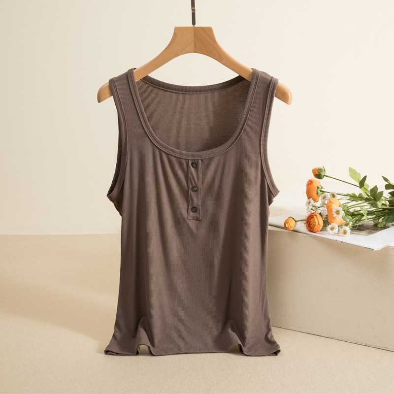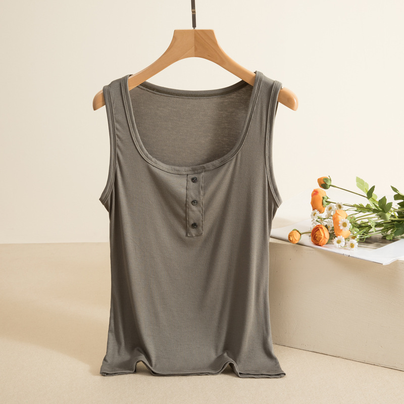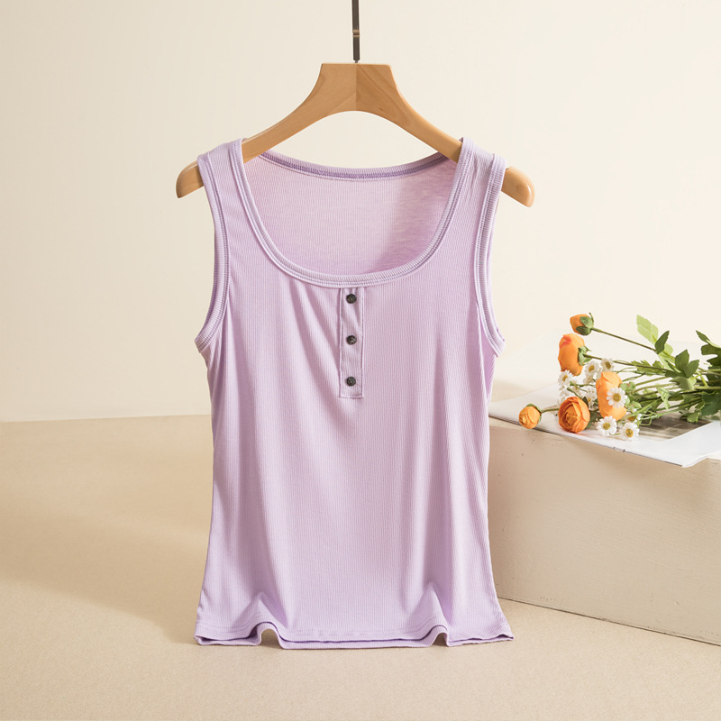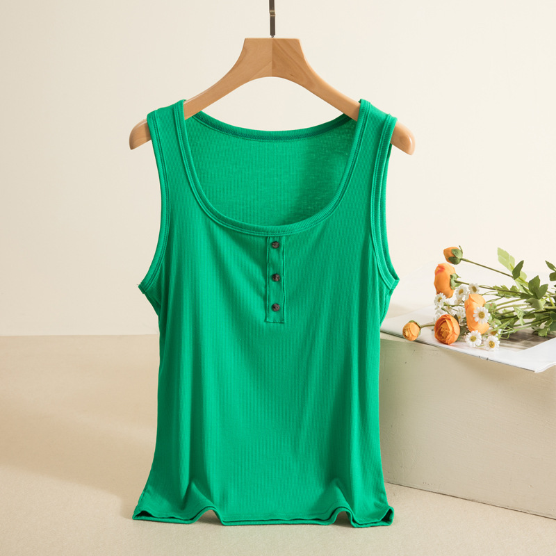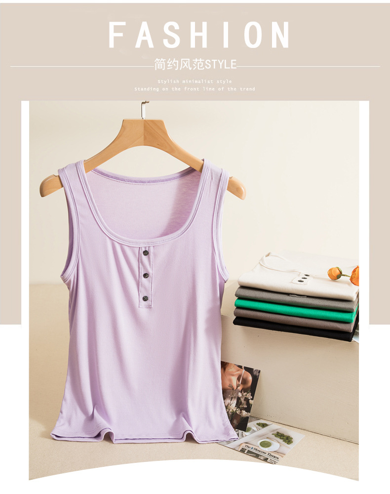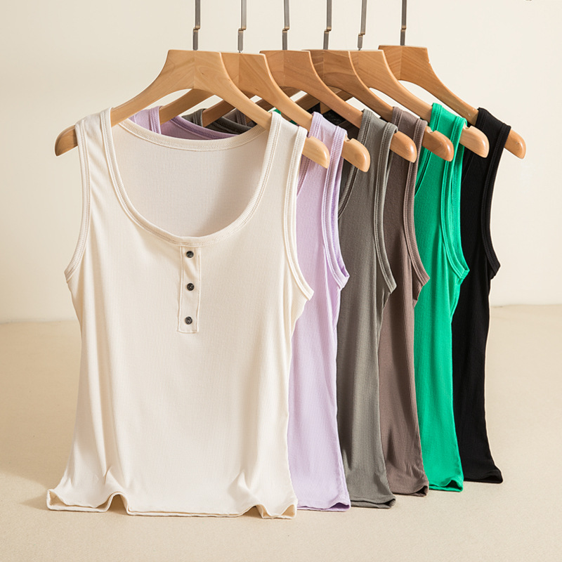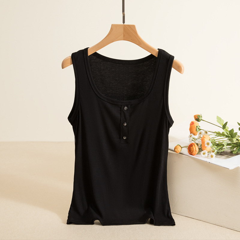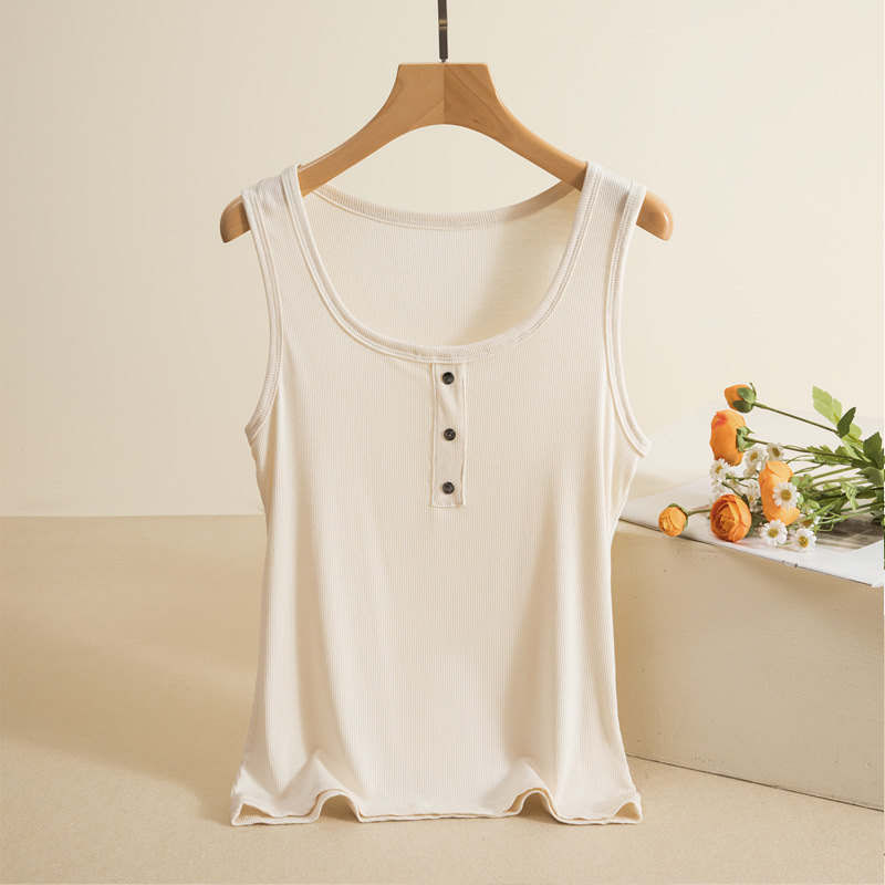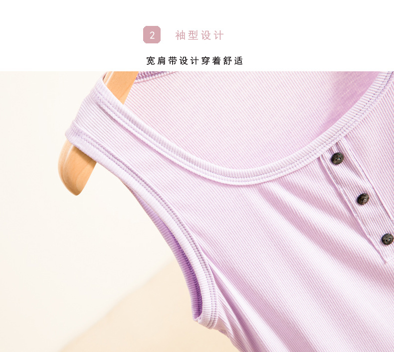 버튼 조끼 여성용 여름 겉옷 내부 와이드 숄더 스트랩 작은 슬링 실 면 니트 슬림핏 민소매 베이스 탑