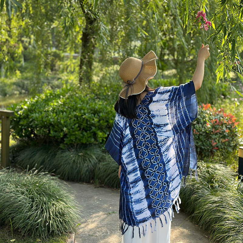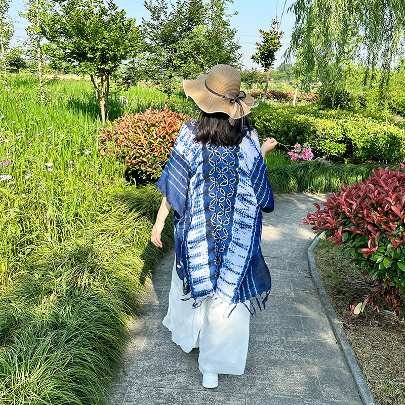 빈티지 타이 다이 Yunnan Lijiang 에스닉 스타일 숄 여성용 여름 면과 린넨 차양 스카프 자외선 차단제 술 숄