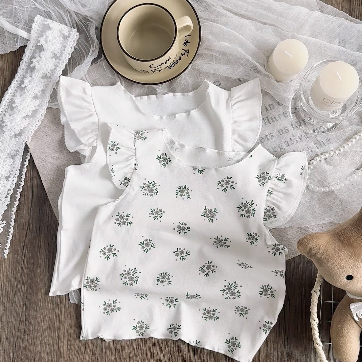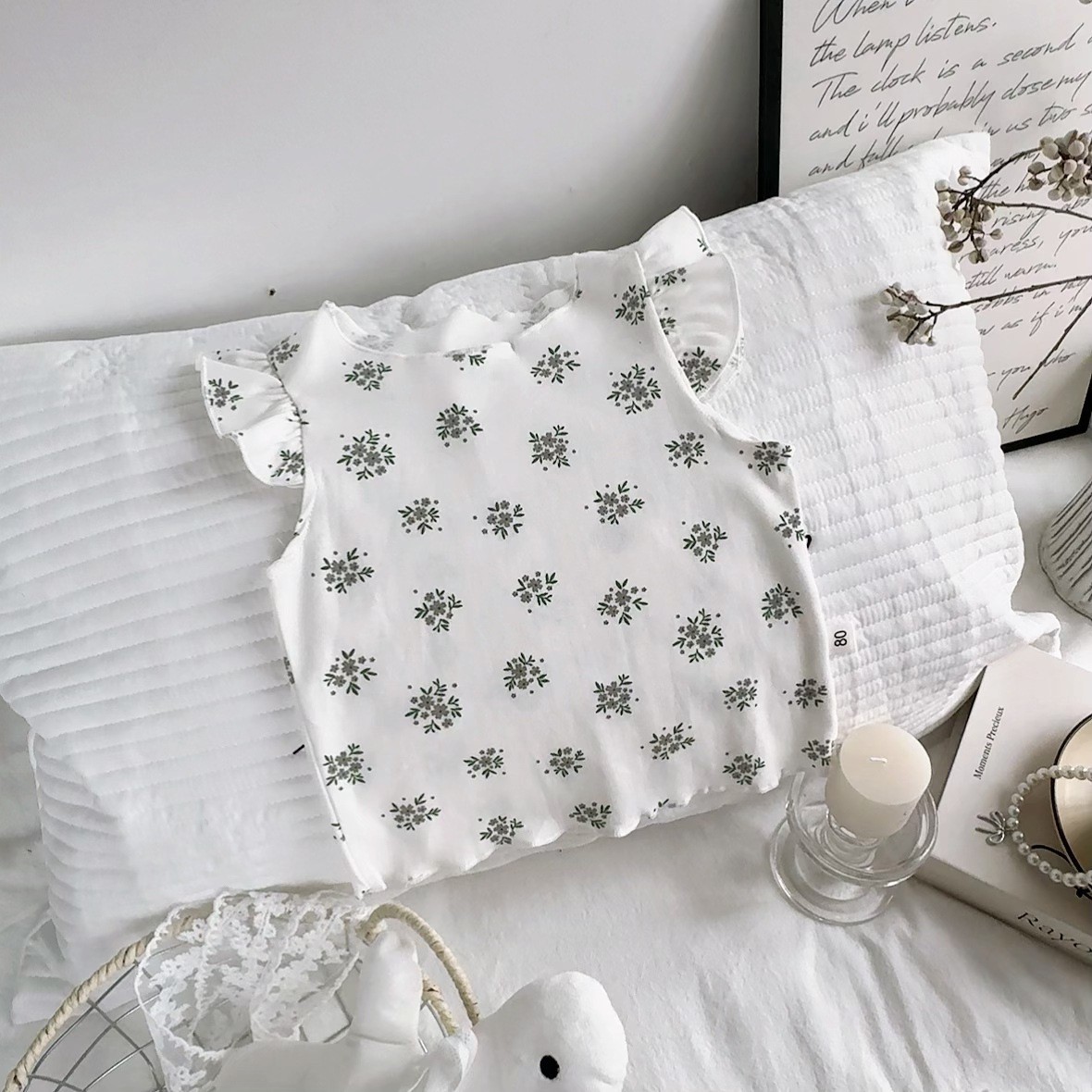 여름 한국 스타일 아기 얇은 면화 부드러운 꽃 무늬 캐주얼 탑 라운드 넥 반팔 티셔츠 컬링 반팔 티셔츠