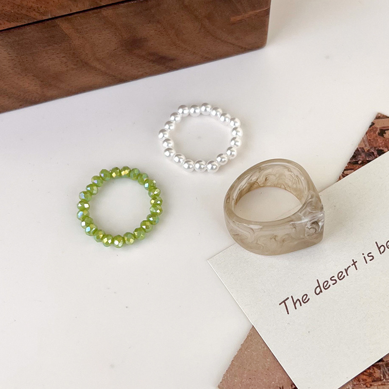 한국식 동대문 동일 스타일 컬러 캔디 컬러 구슬 진주 링 작은 신선한 핑거 링 다양한 착용 스타일 트렌디 링