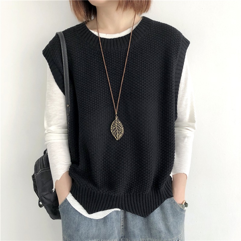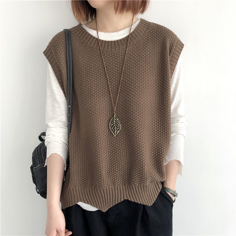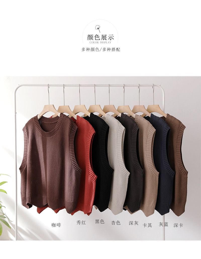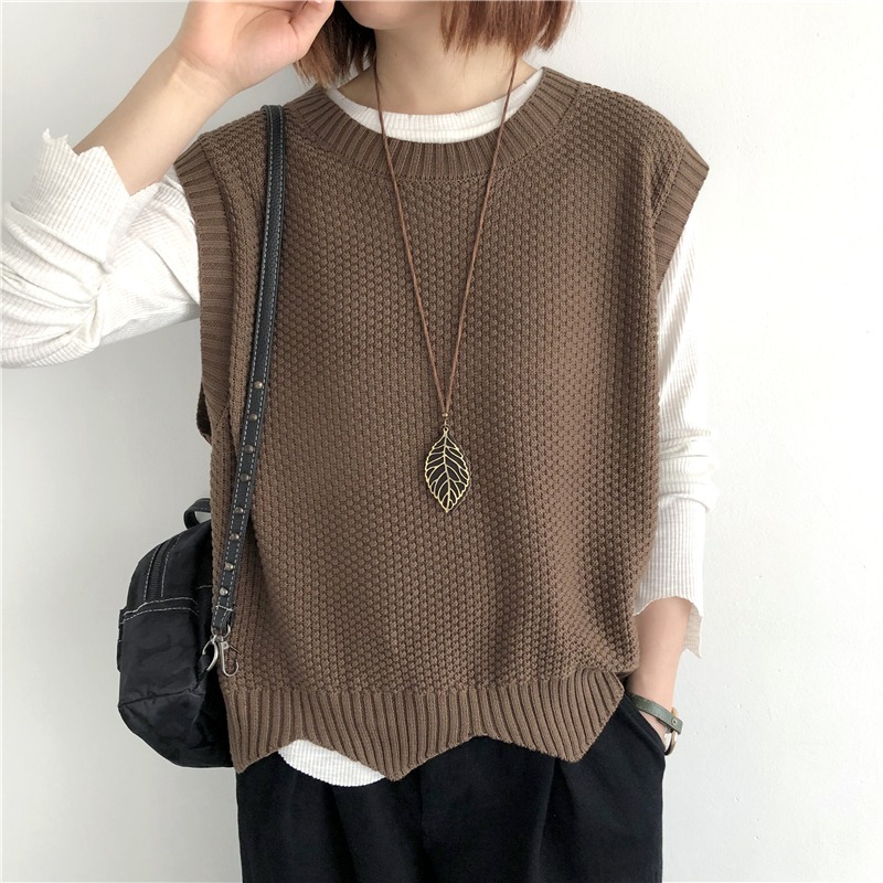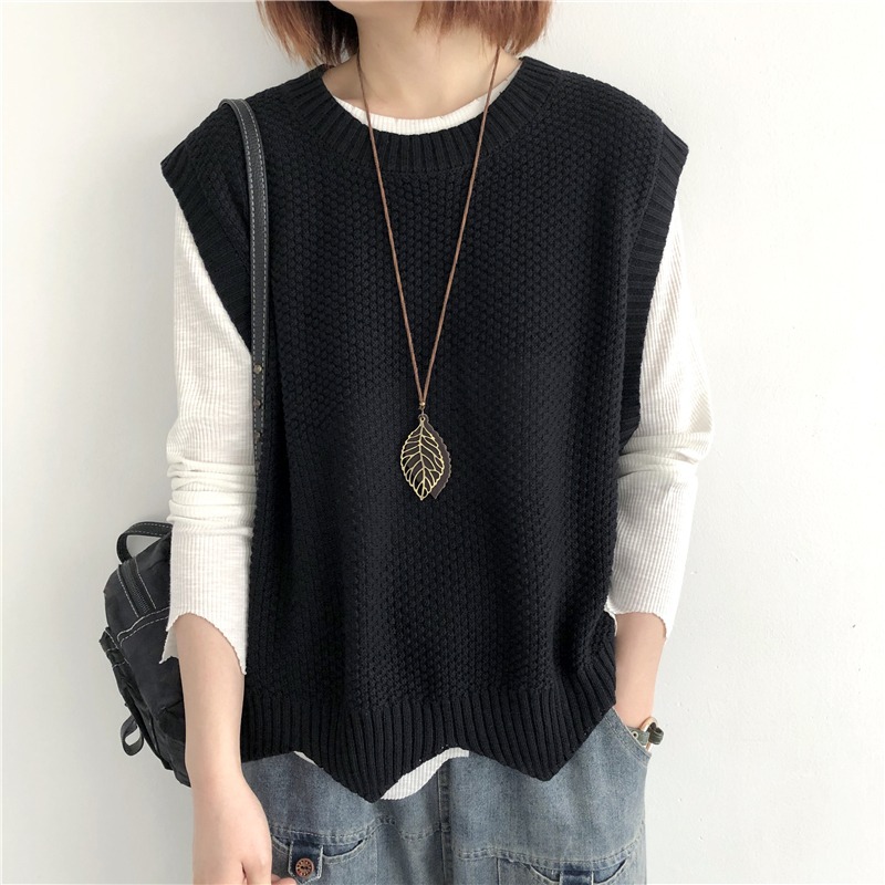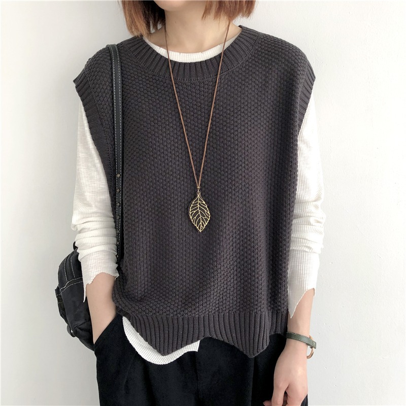 니트 조끼 여성 조끼 2023 가을 단색 느슨한 라운드 넥 불규칙한 풀오버 짧은 조끼 어깨 조끼스토어 가기