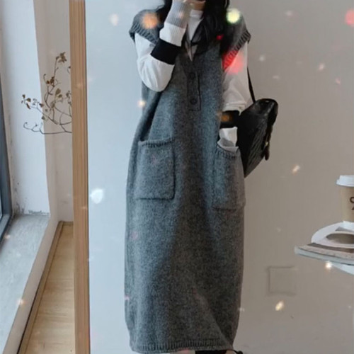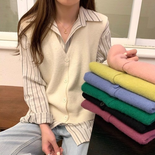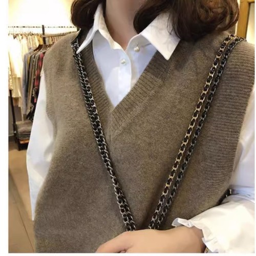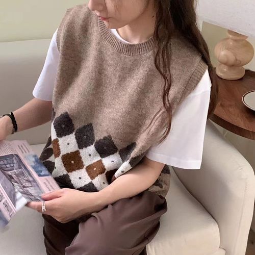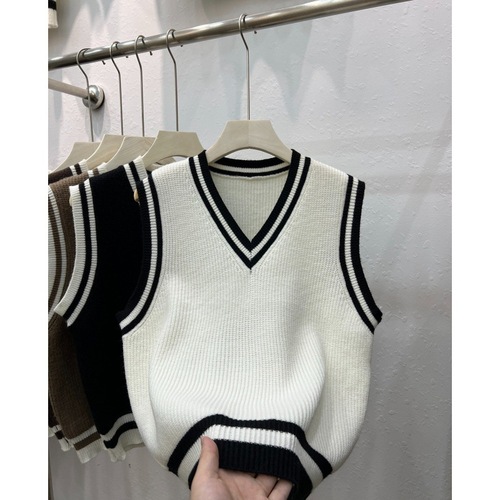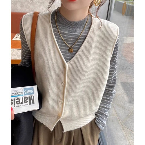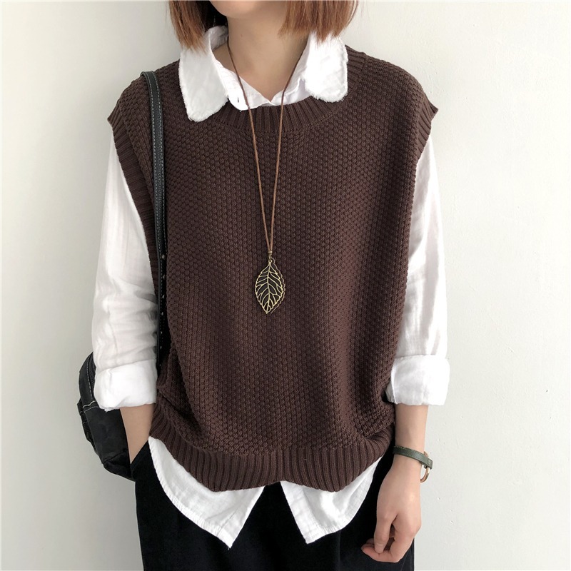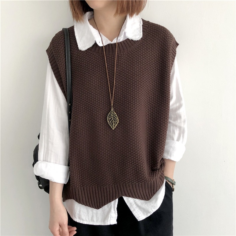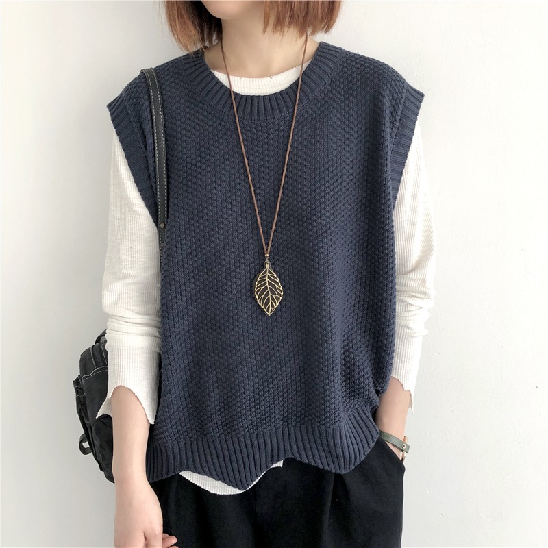 니트 조끼 여성 조끼 2023 가을 단색 느슨한 라운드 넥 불규칙한 풀오버 짧은 조끼 어깨 조끼스토어 가기