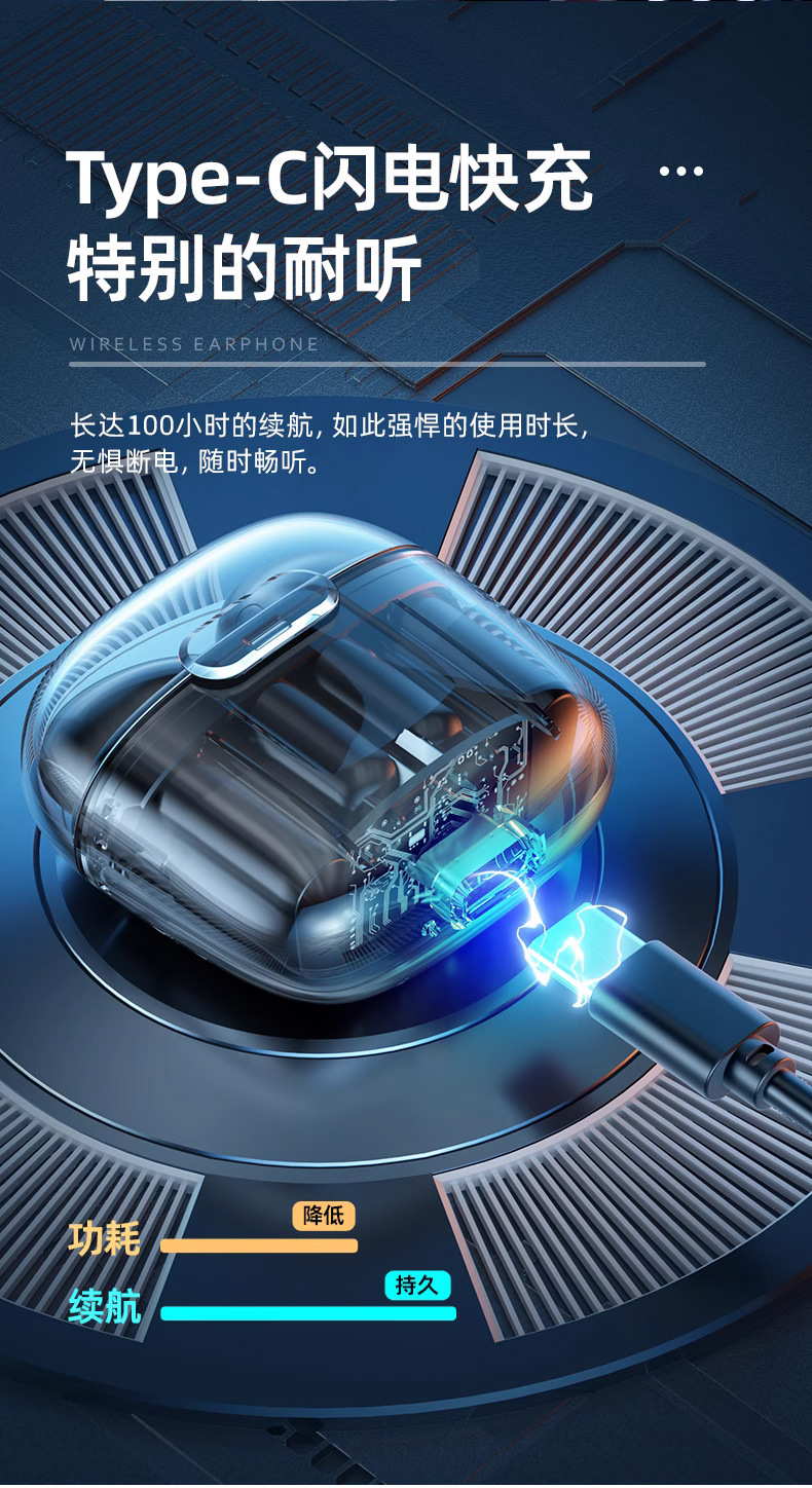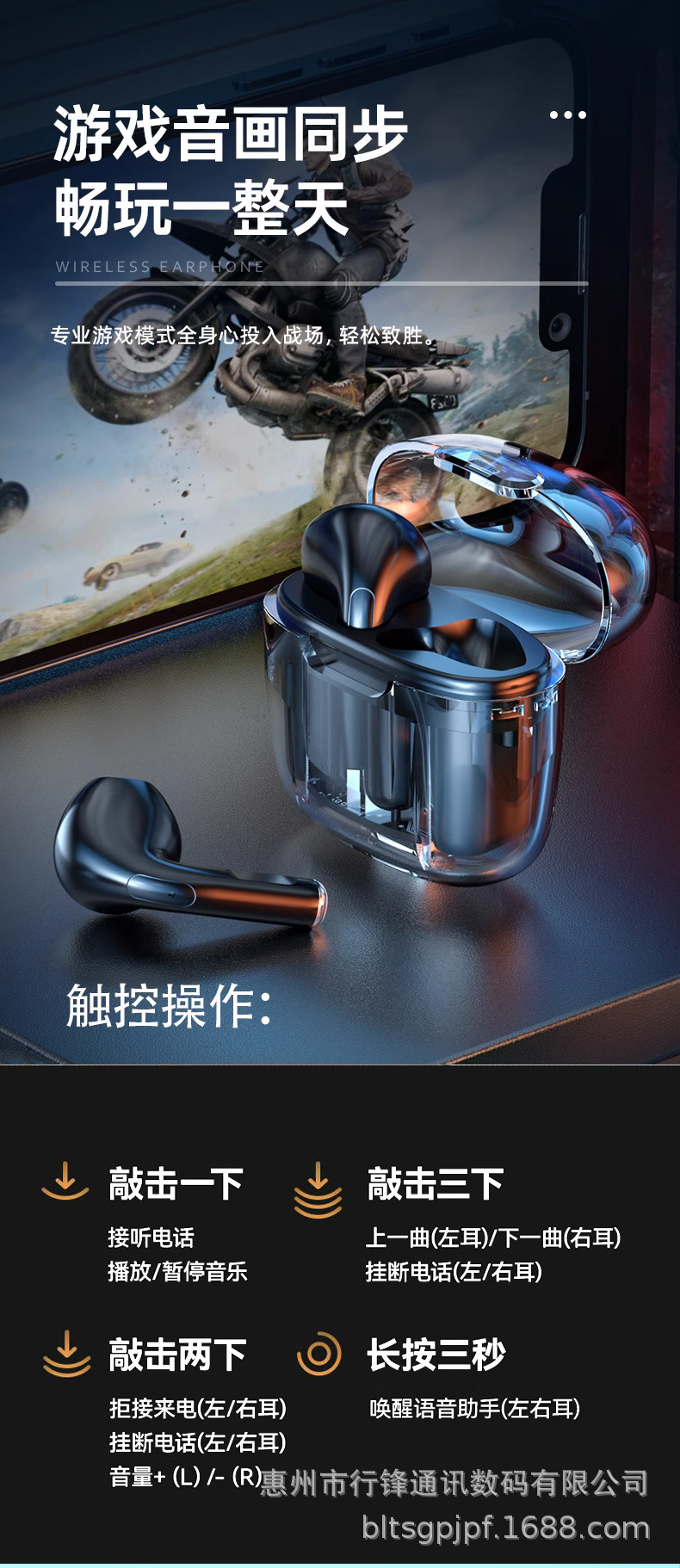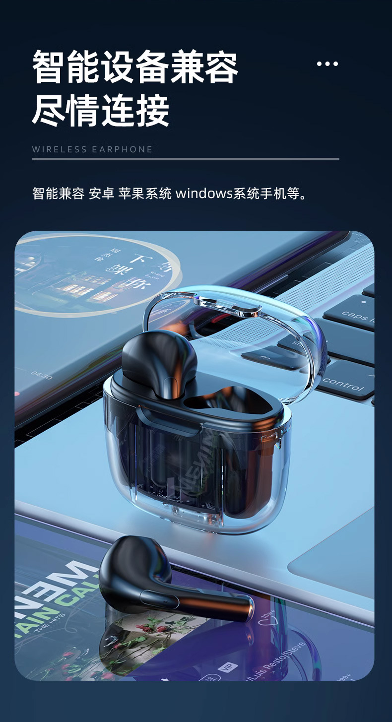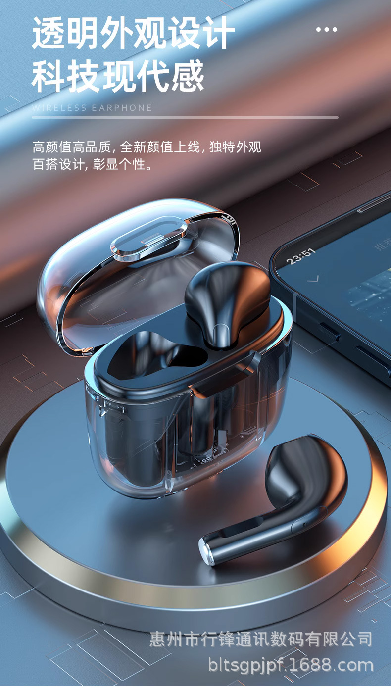 진정한 무선 투명 충전 빈 TWS 무선 블루투스 헤드셋 바이노럴 스포츠 게임 통화 5.3 청취 스테레오