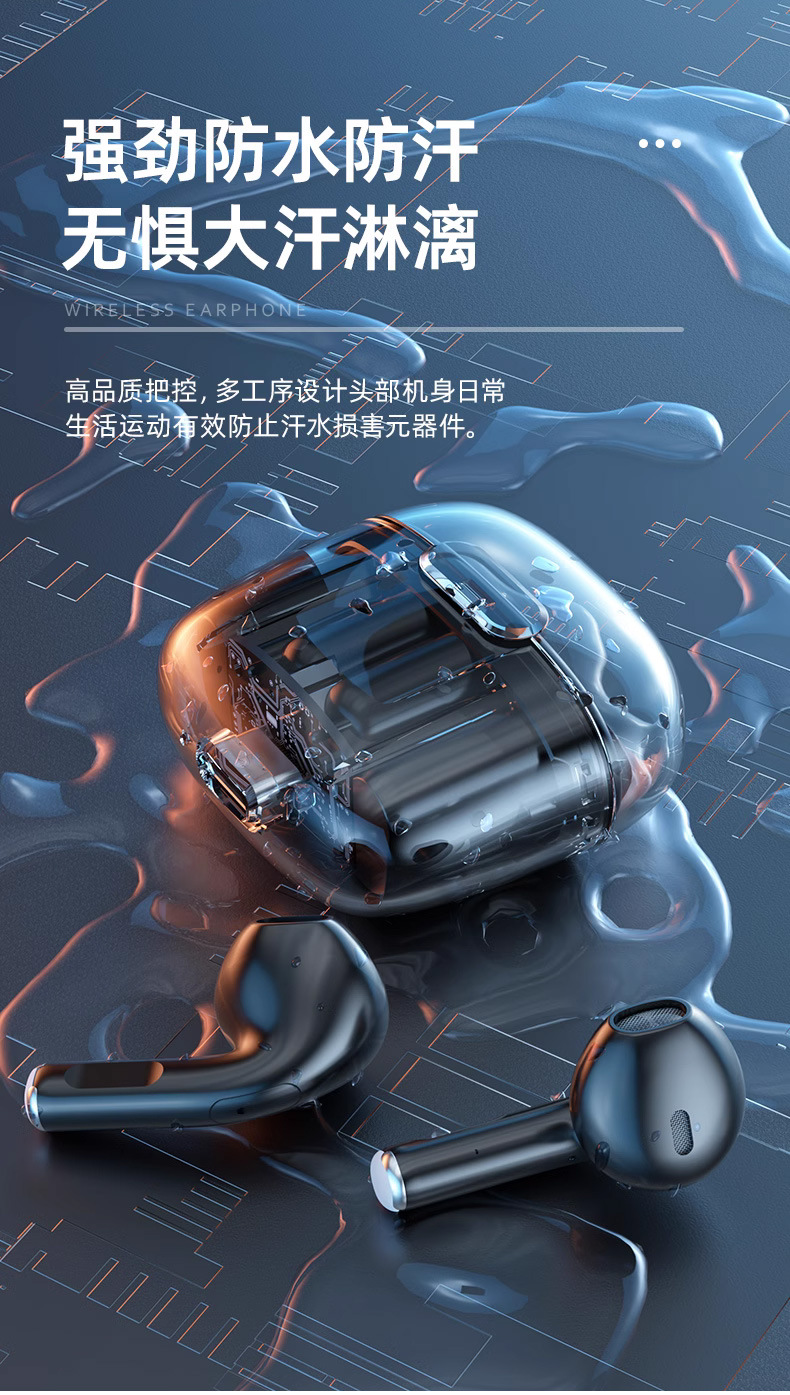 진정한 무선 투명 충전 빈 TWS 무선 블루투스 헤드셋 바이노럴 스포츠 게임 통화 5.3 청취 스테레오스토어 가기