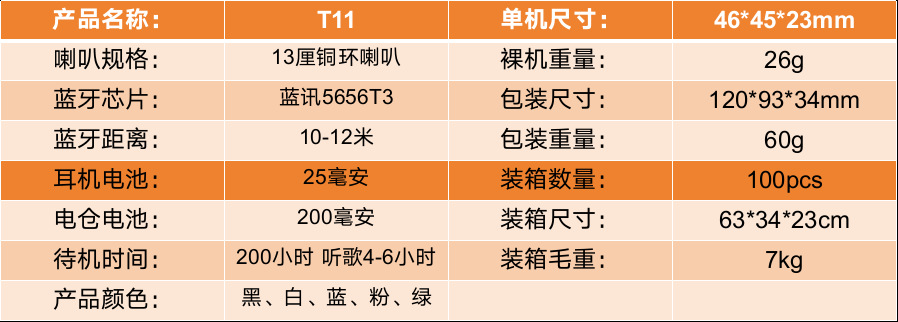 • T11 TWS 블루투스 헤드셋 [블랙]]