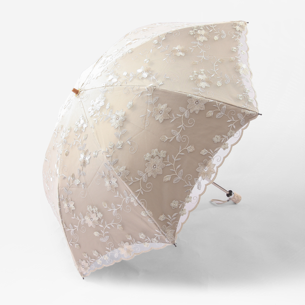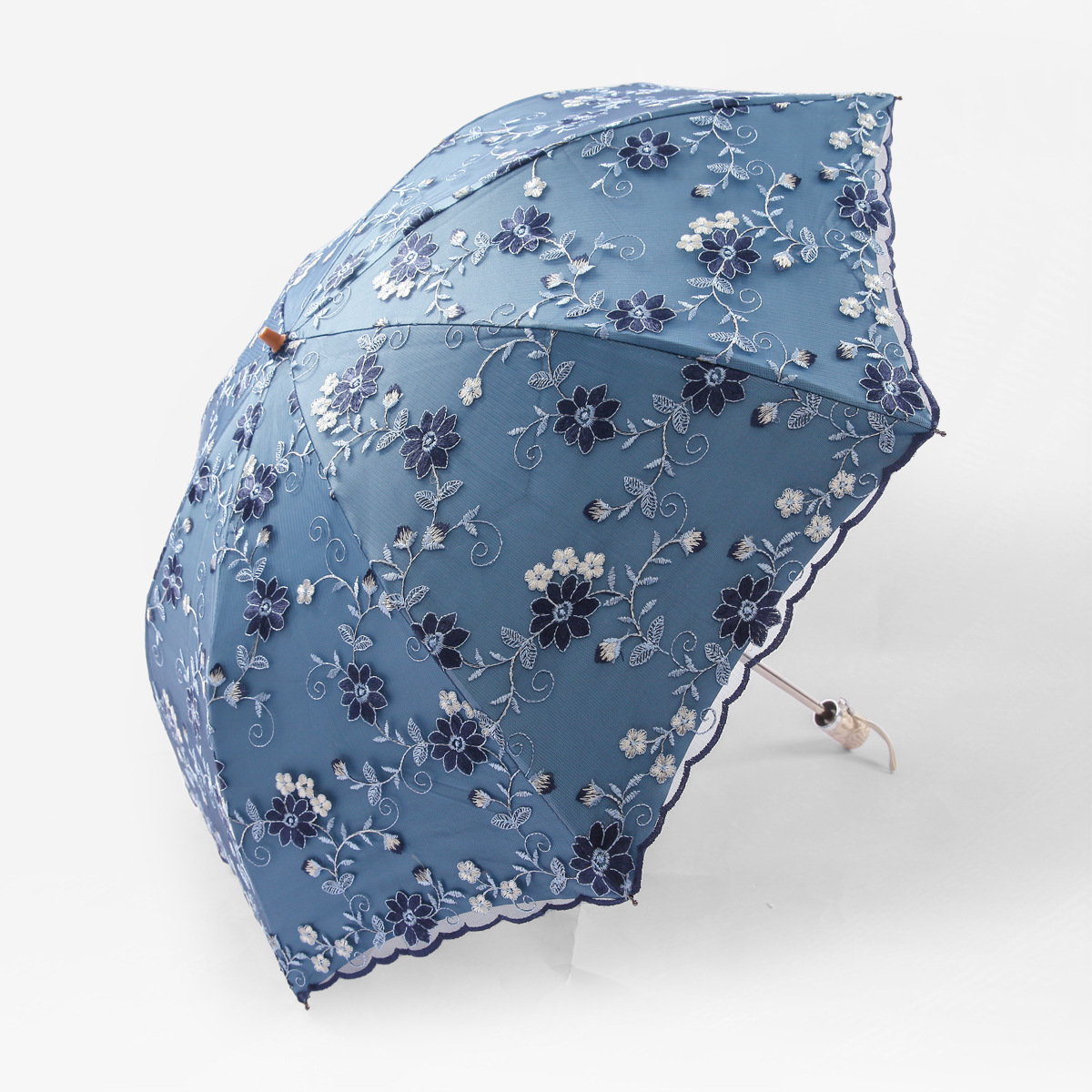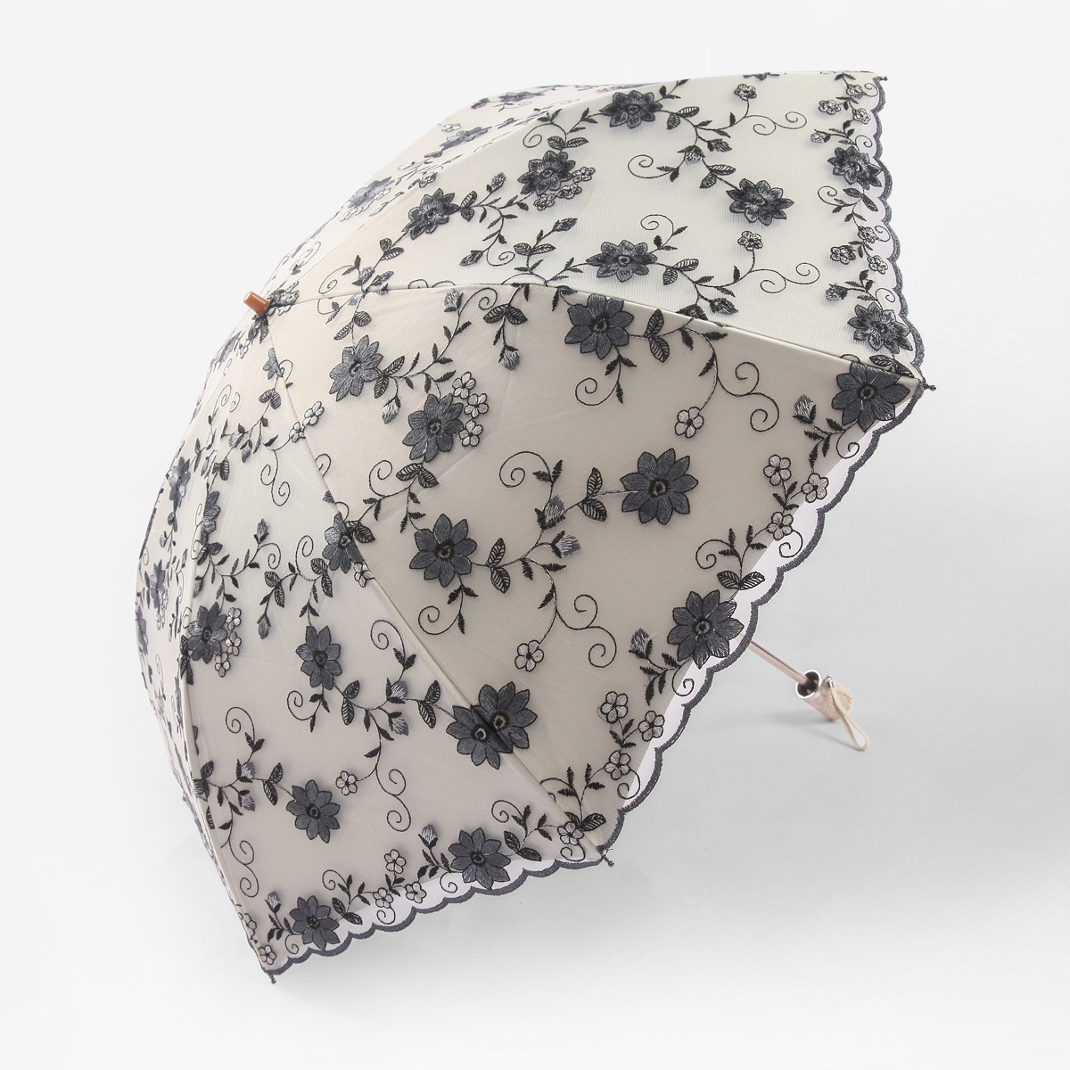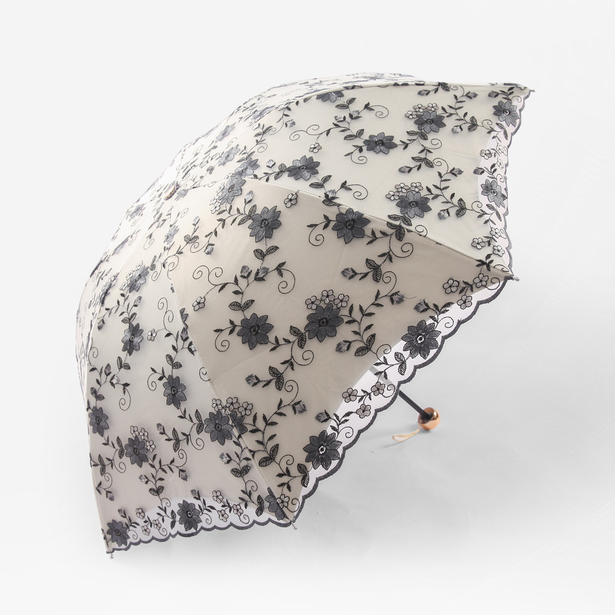 KBQ1 새로운 자외선 차단 차양 우산 여성용 레이스 자수 태양 우산 공주 우산 작은 신선한 블랙 접착제 맑은 우산
