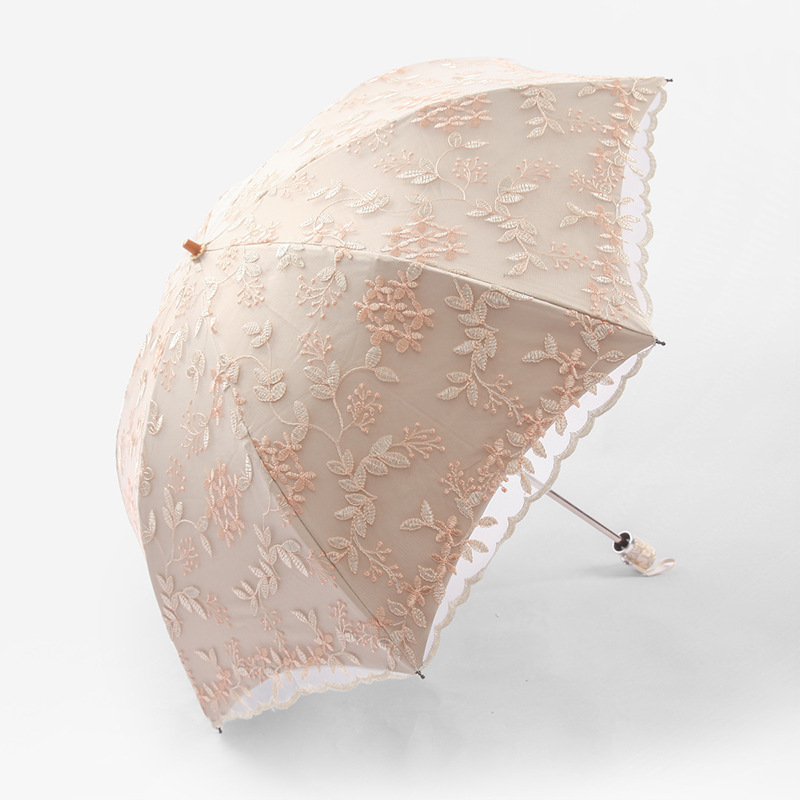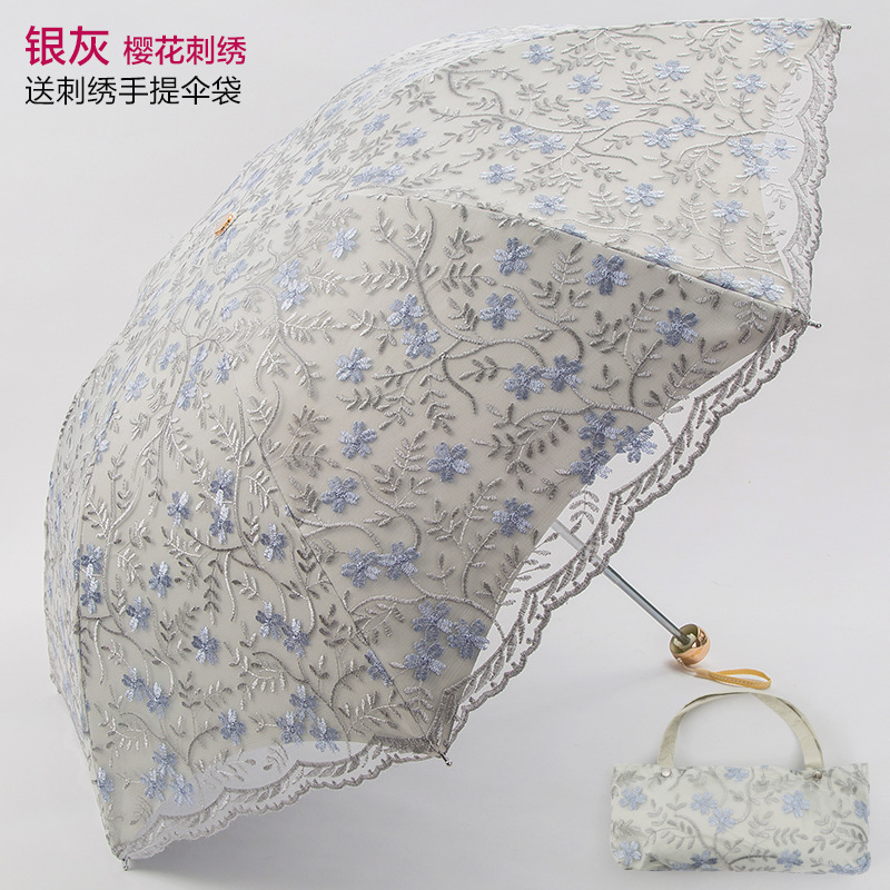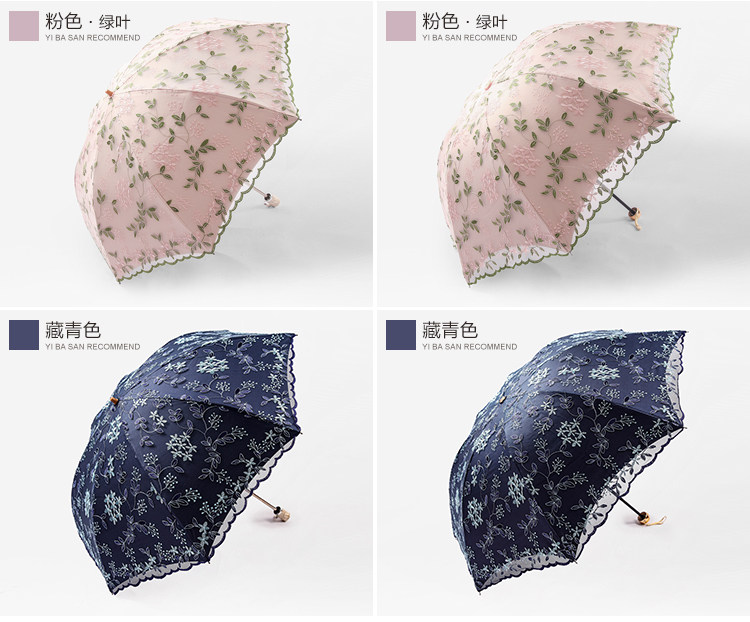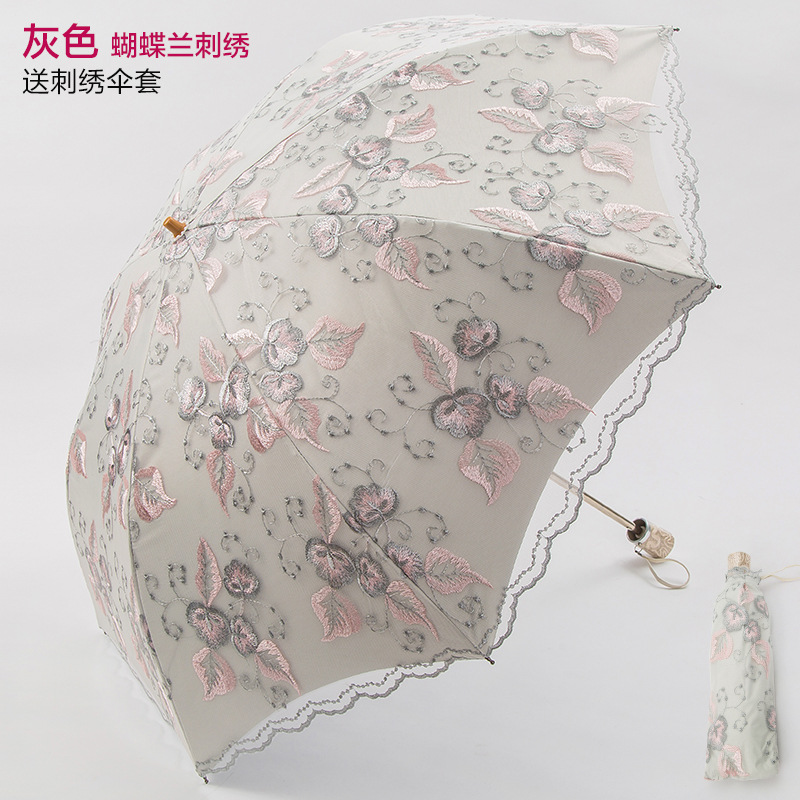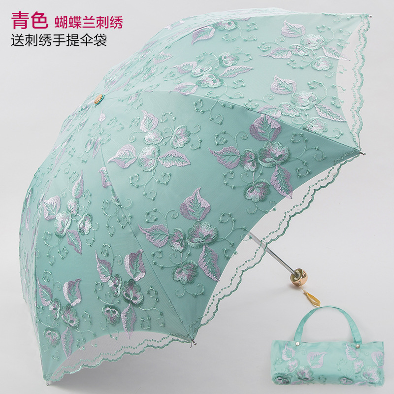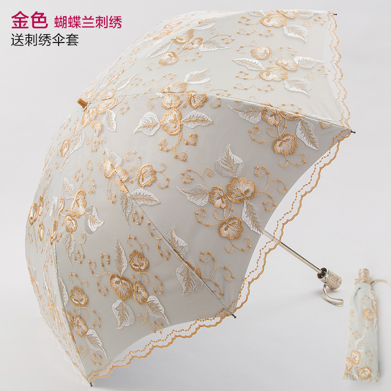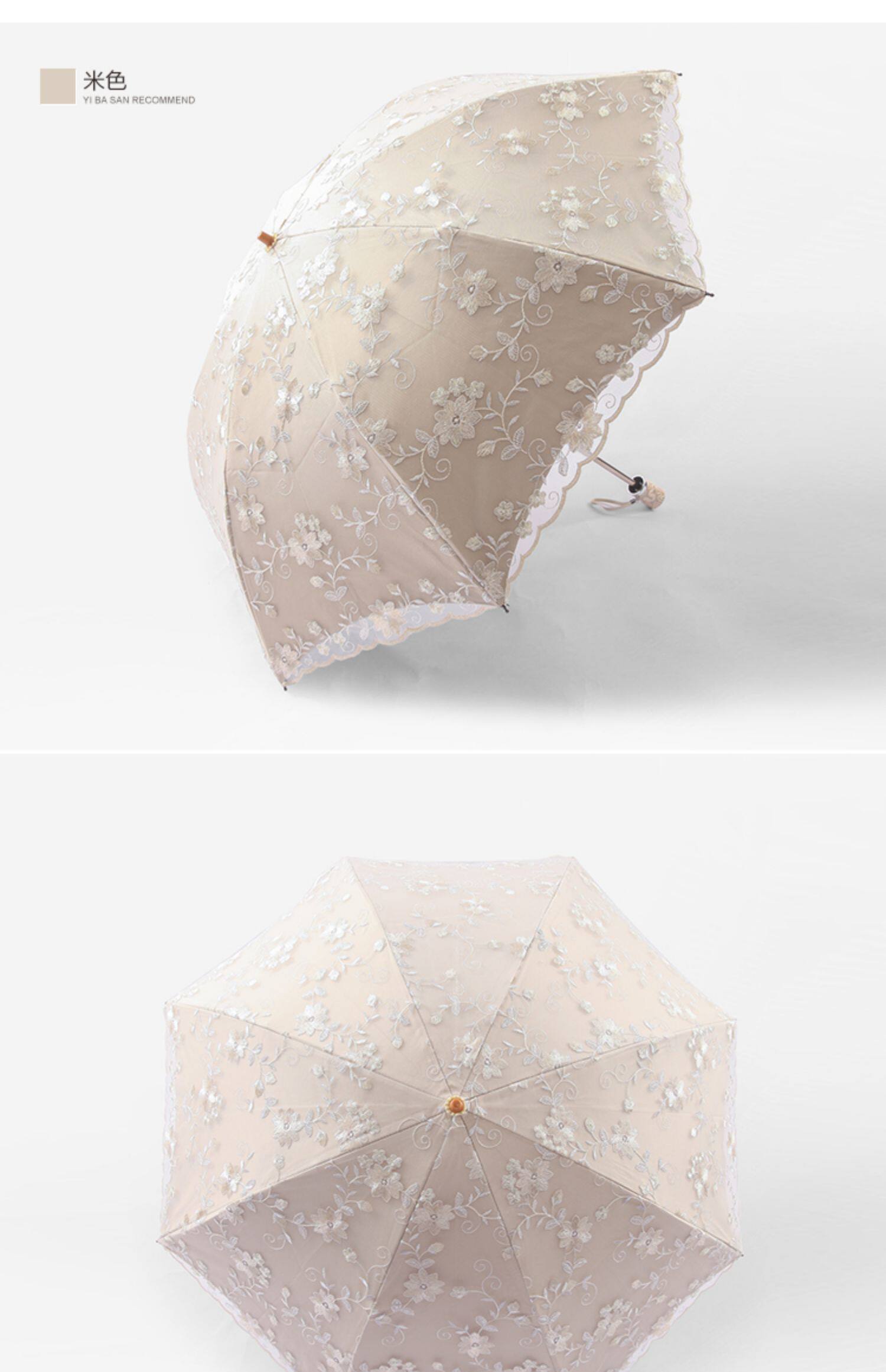 KBQ1 새로운 자외선 차단 차양 우산 여성용 레이스 자수 태양 우산 공주 우산 작은 신선한 블랙 접착제 맑은 우산스토어 가기