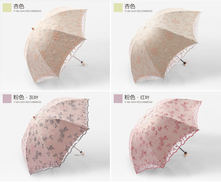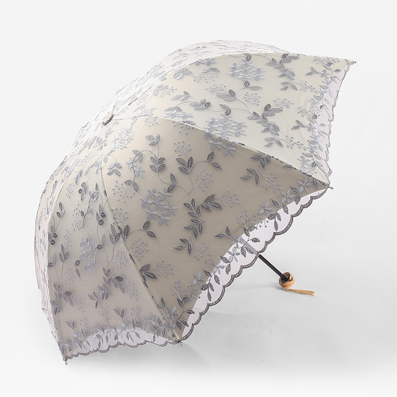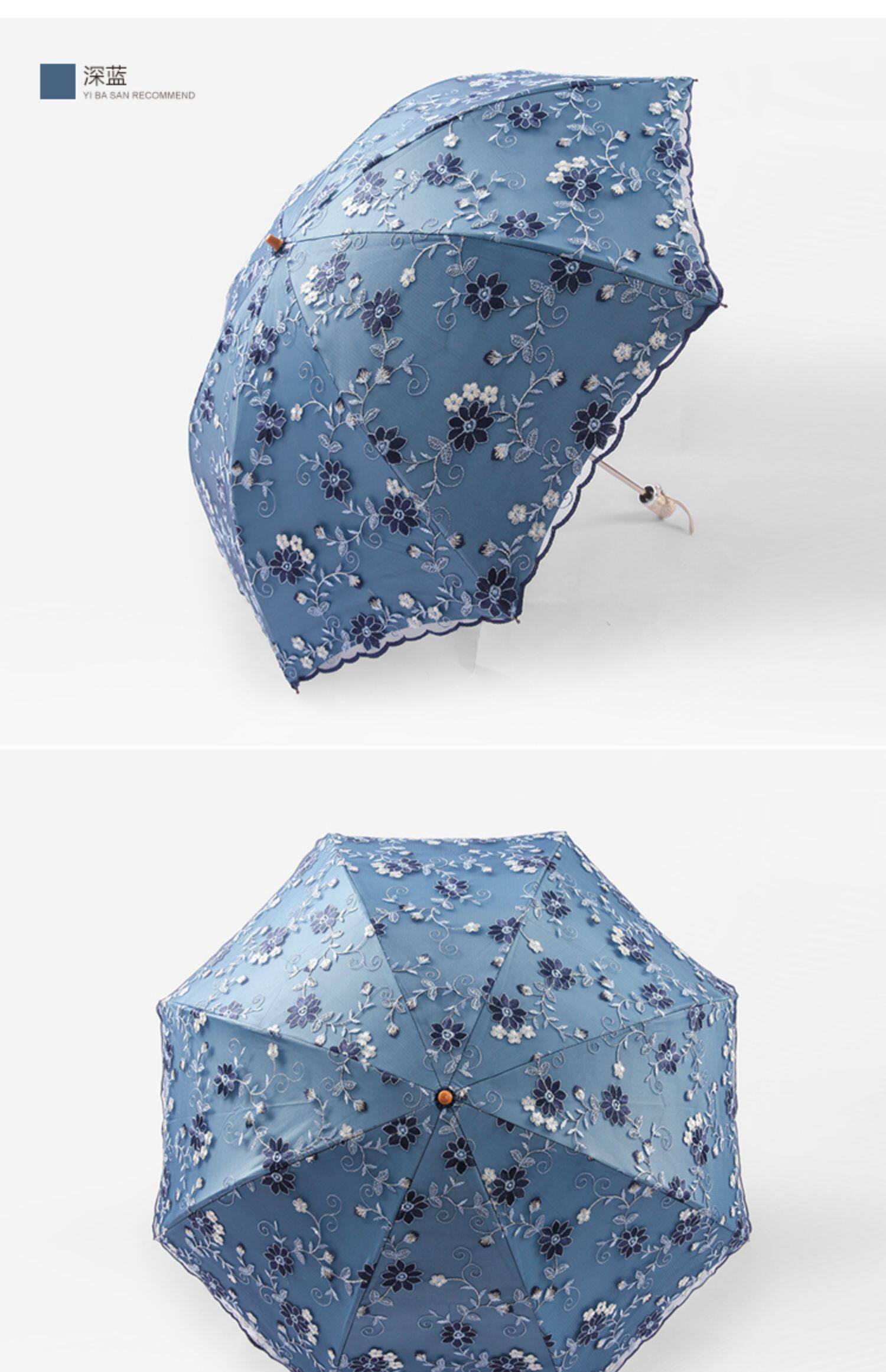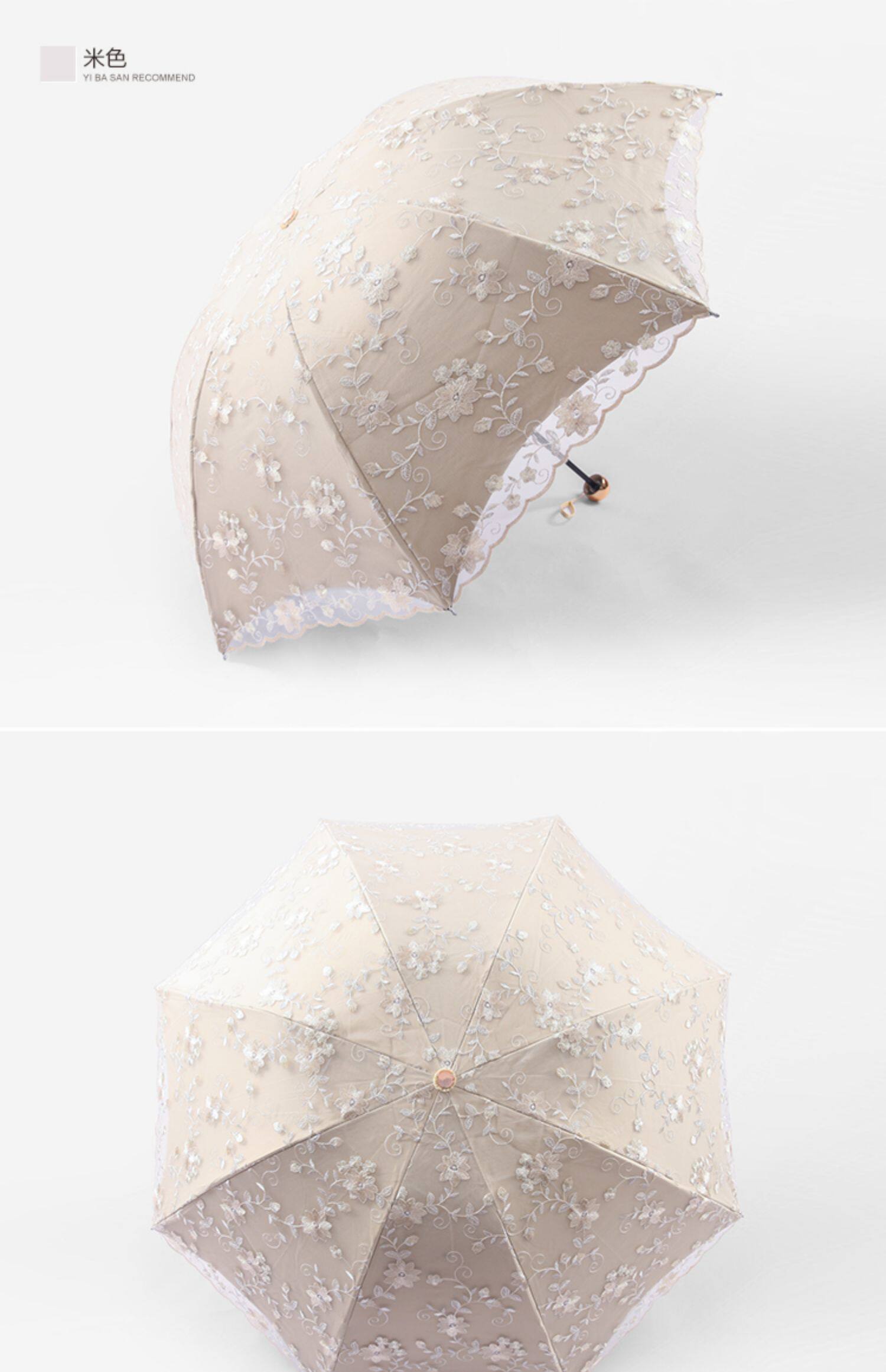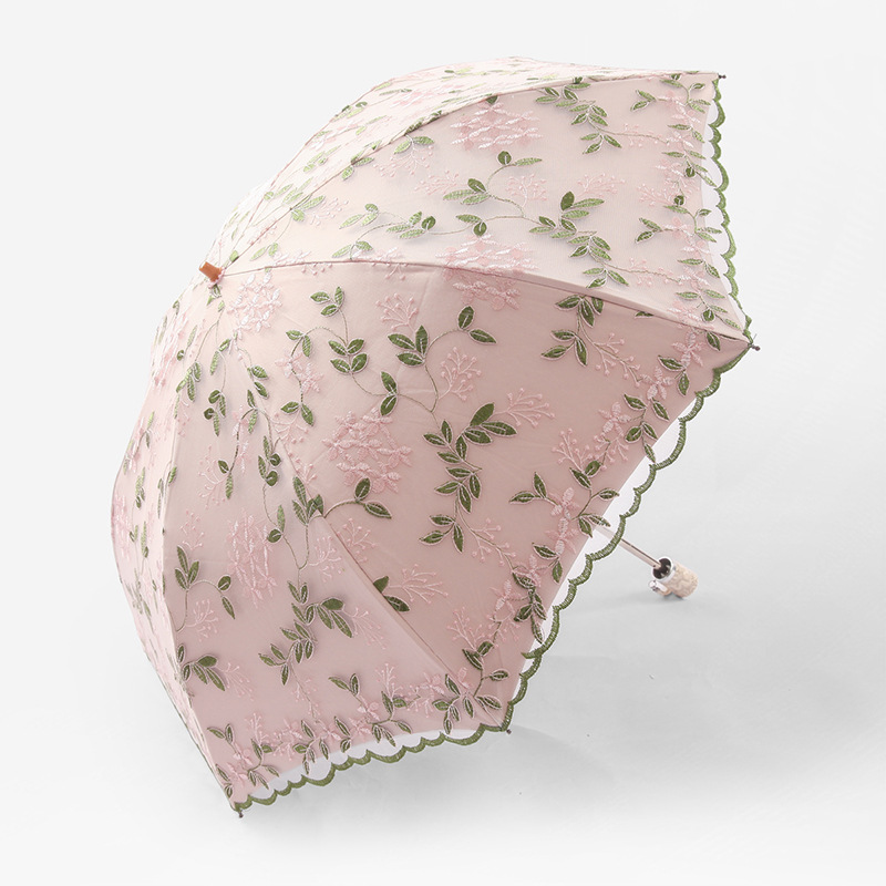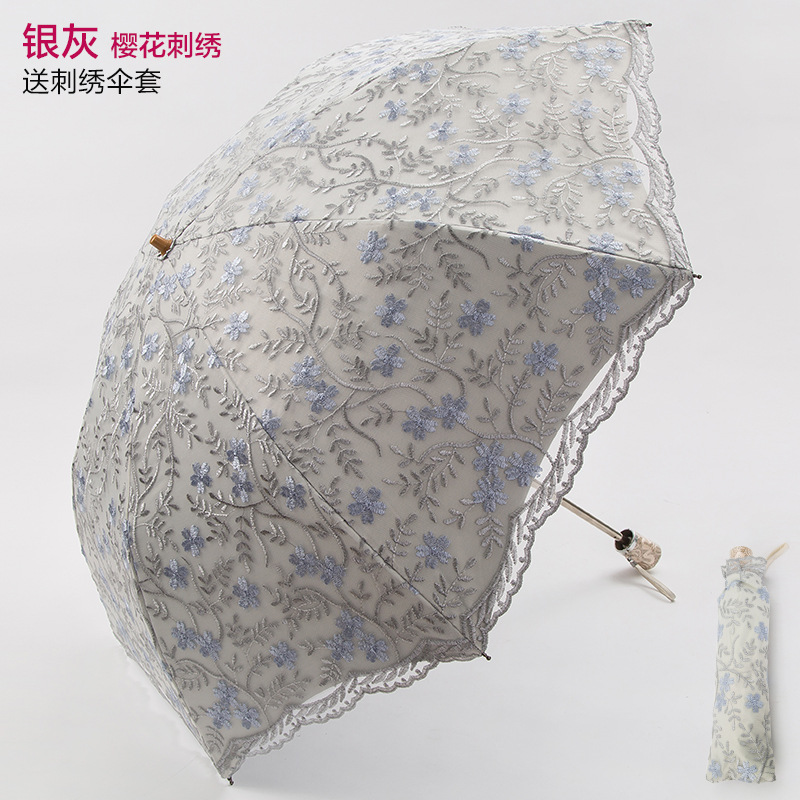 KBQ1 새로운 자외선 차단 차양 우산 여성용 레이스 자수 태양 우산 공주 우산 작은 신선한 블랙 접착제 맑은 우산스토어 가기