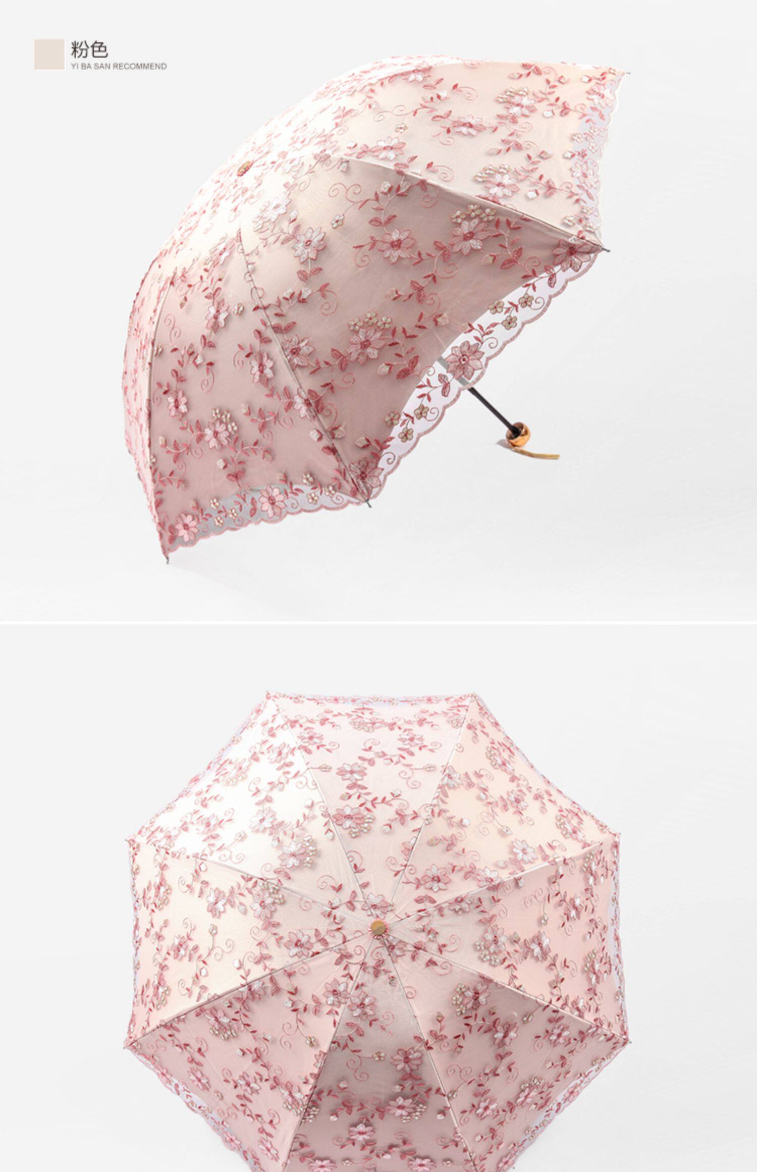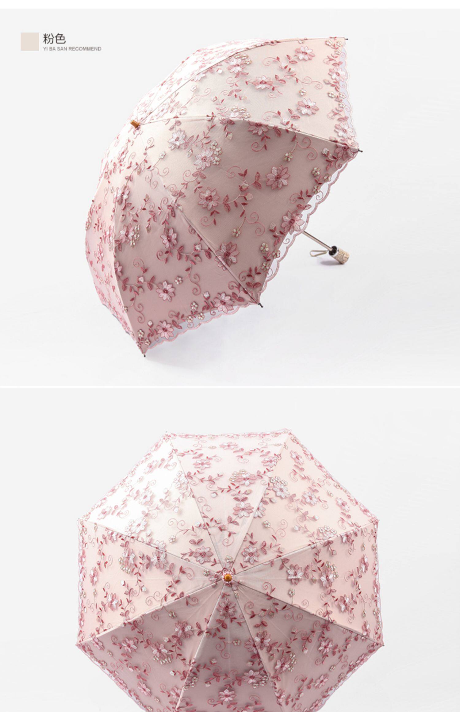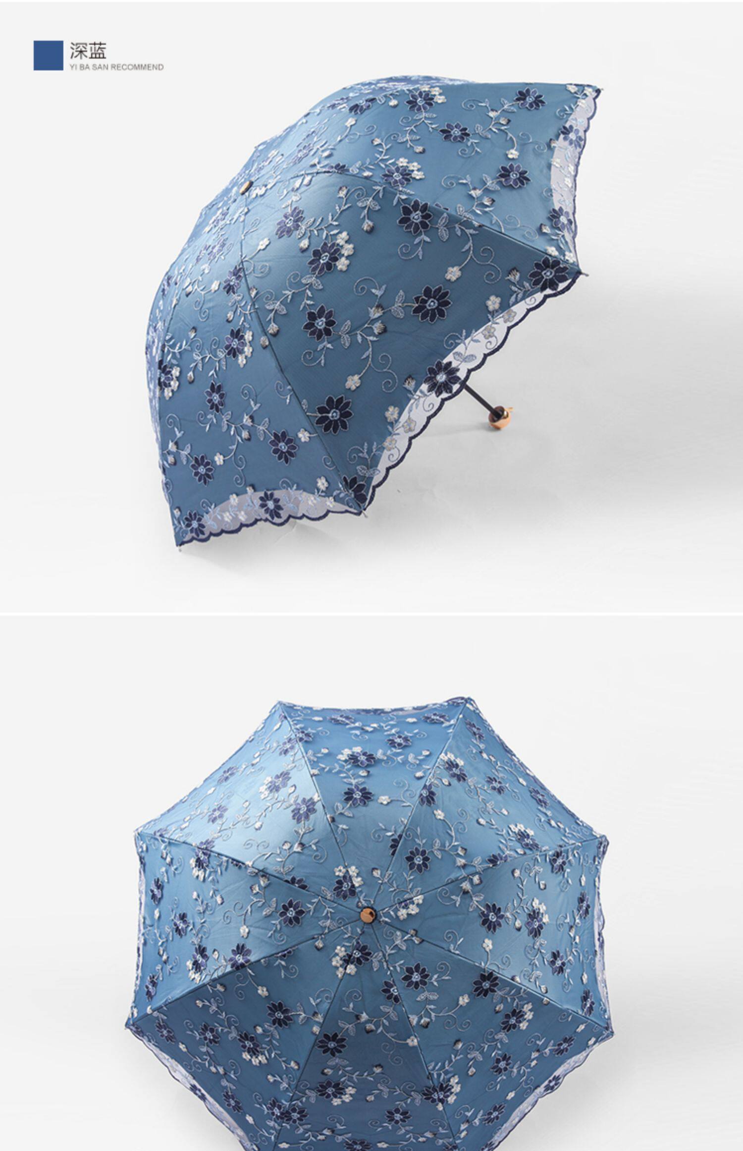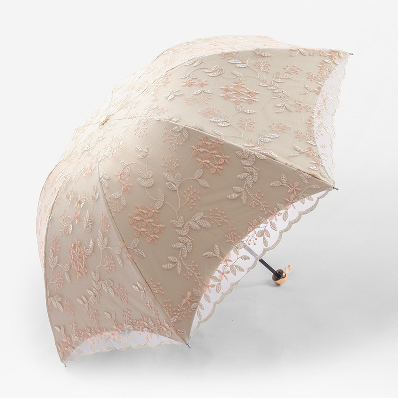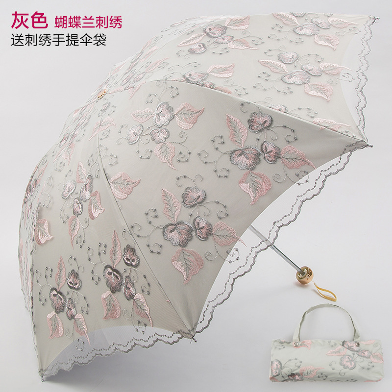 KBQ1 새로운 자외선 차단 차양 우산 여성용 레이스 자수 태양 우산 공주 우산 작은 신선한 블랙 접착제 맑은 우산스토어 가기
