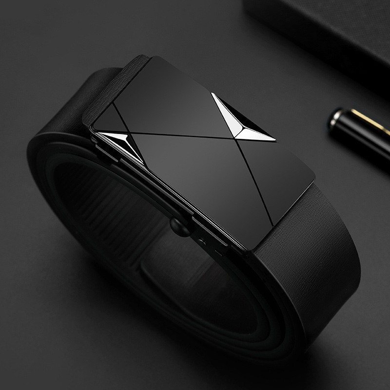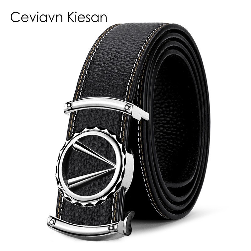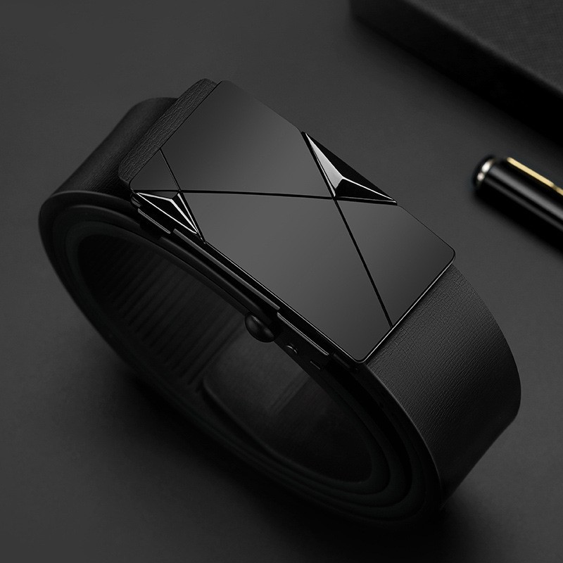 남성용 이너웨어 투슬리스 자동 버클 벨트 비즈니스 캐주얼 모든 매치 유행 2 층 소가죽 벨트