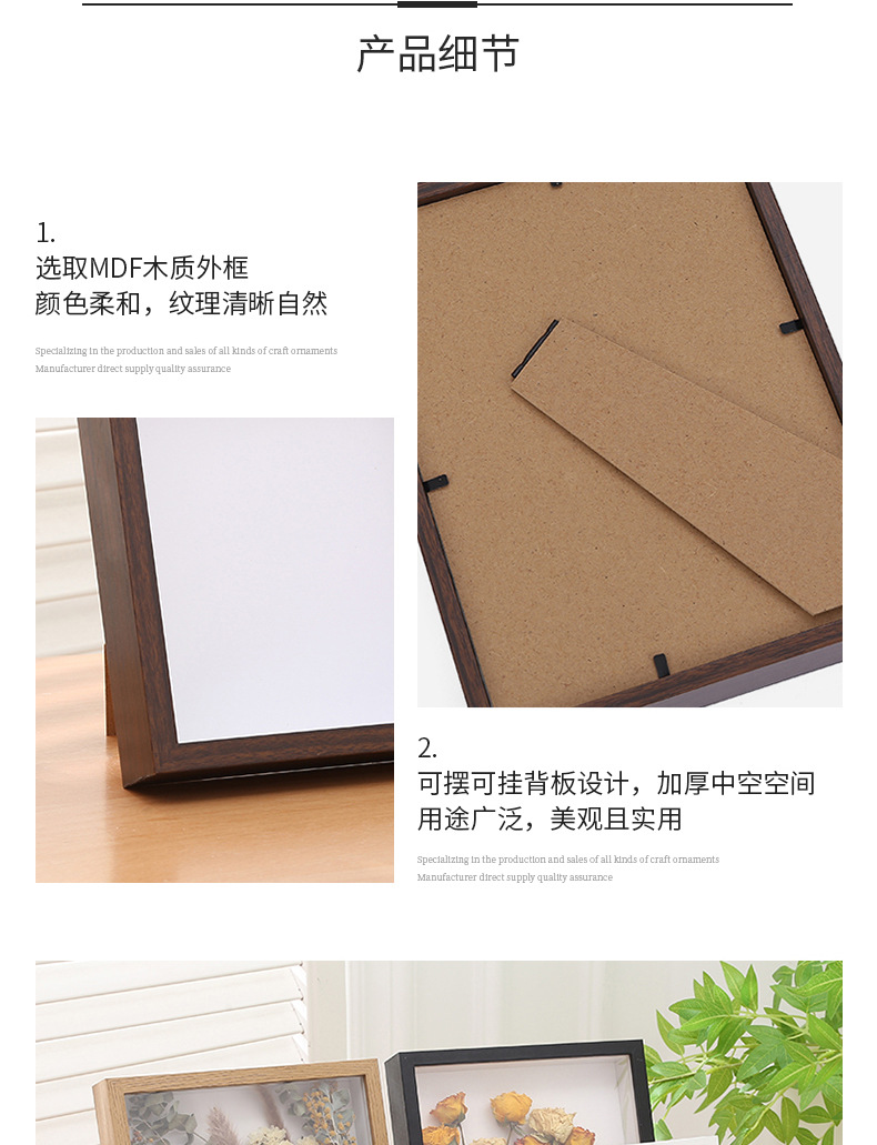 간단한 나무 말린 꽃 사진 프레임 3CM 입체 중공 말린 꽃 프레임 장식품 발렌타인 데이 수제 선물 사진 프레임 도매스토어 가기