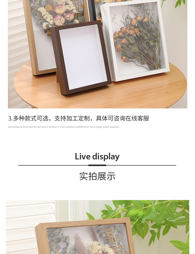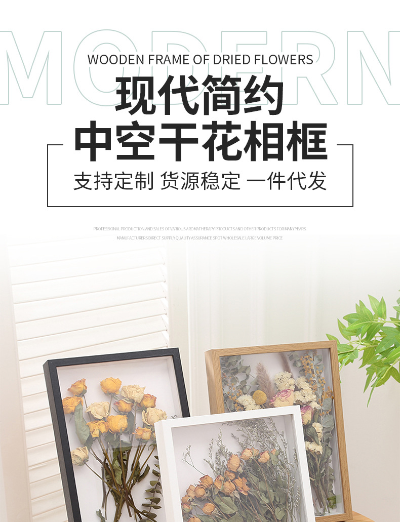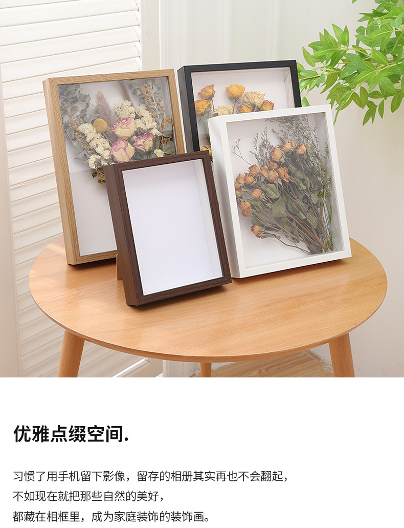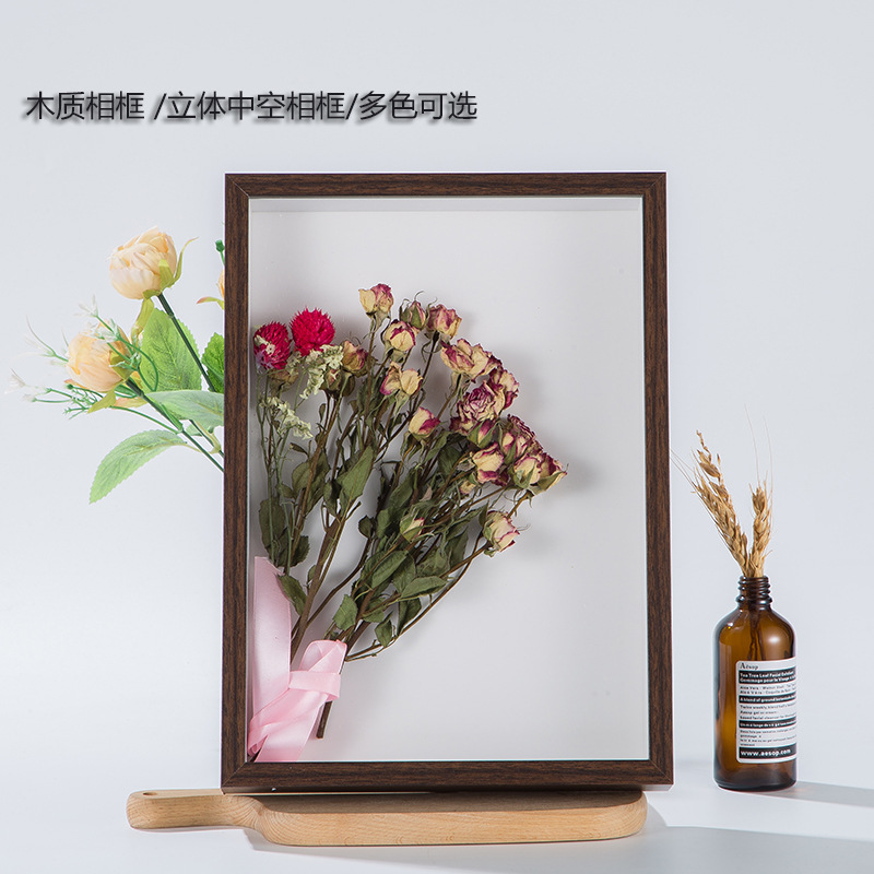 간단한 나무 말린 꽃 사진 프레임 3CM 입체 중공 말린 꽃 프레임 장식품 발렌타인 데이 수제 선물 사진 프레임 도매