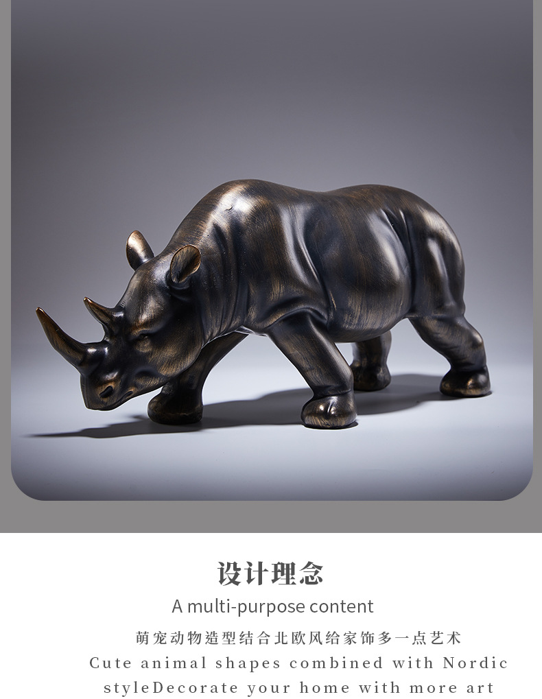 가벼운 럭셔리 고급 코뿔소 장식품 시뮬레이션 동물 조각 유럽식 거실 연구 와인 캐비닛 사무실 데스크탑 장식