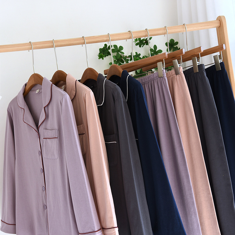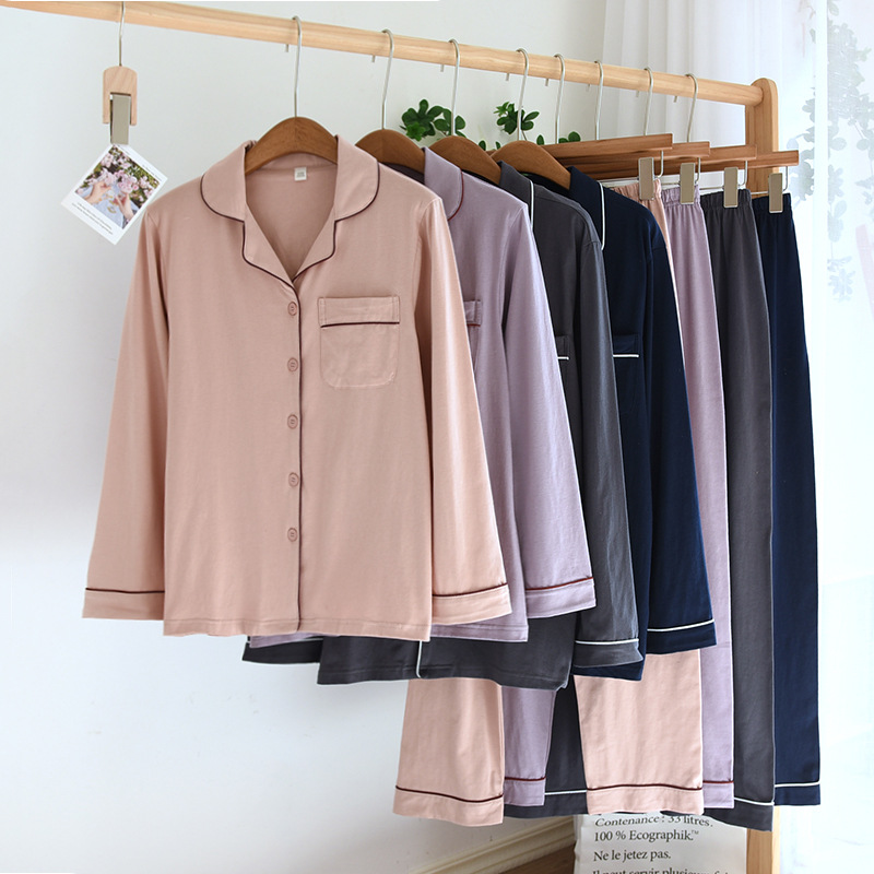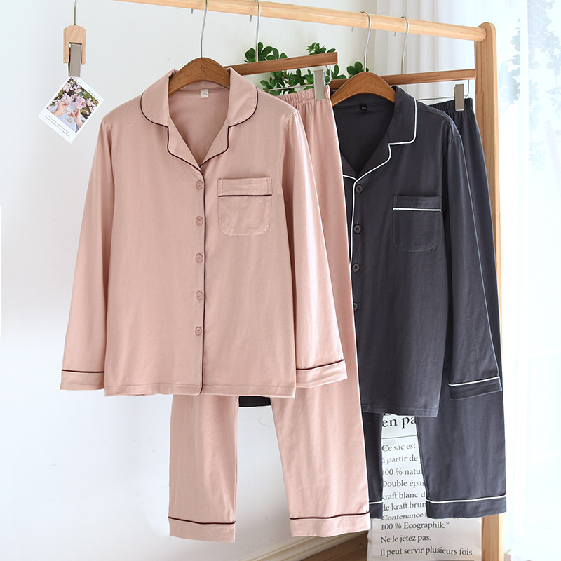 커플 잠옷 여자의 봄과 가을 니트 면 긴 소매 가정 옷 봄과 여름 얇은 남자의 가정 옷 세트스토어 가기