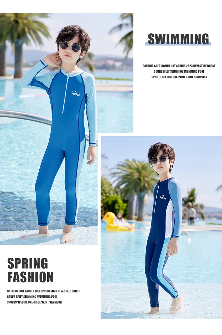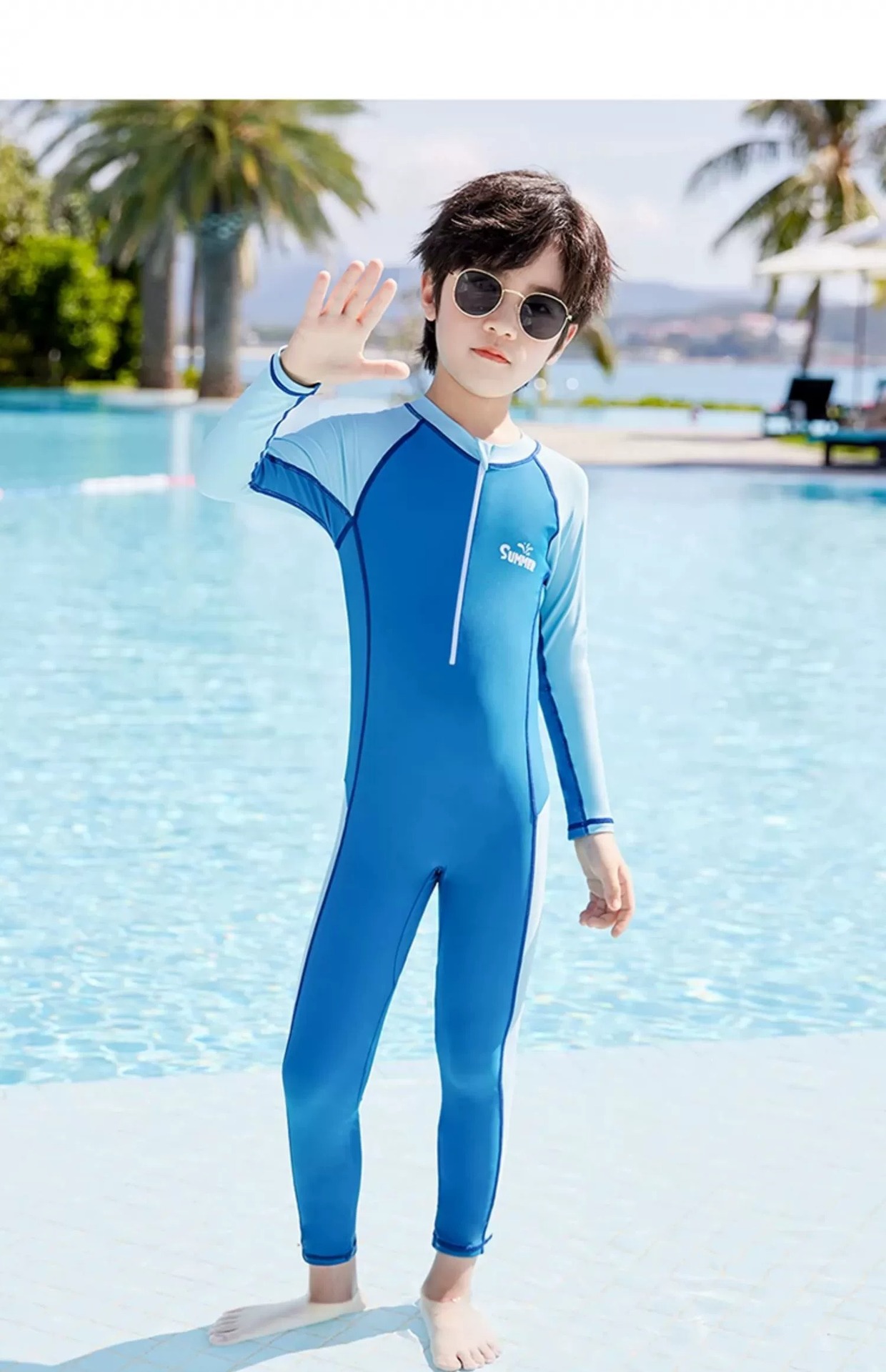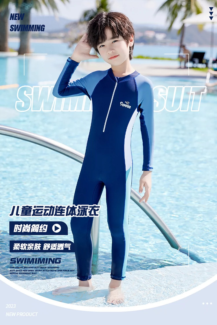 어린이 수영복 새 소년 긴팔 원피스 온천 소형, 중형 및 대형 어린이 여름 수영복 바지 전문 수영복 도매