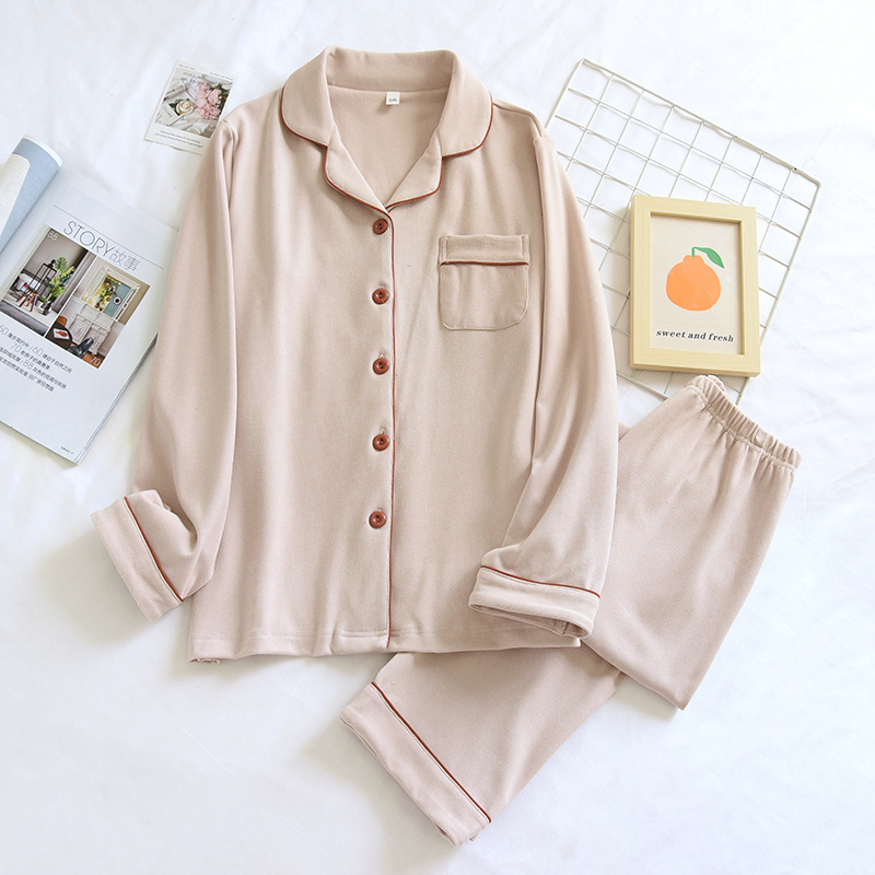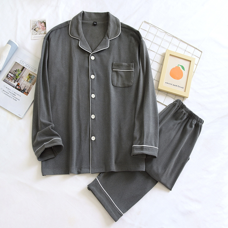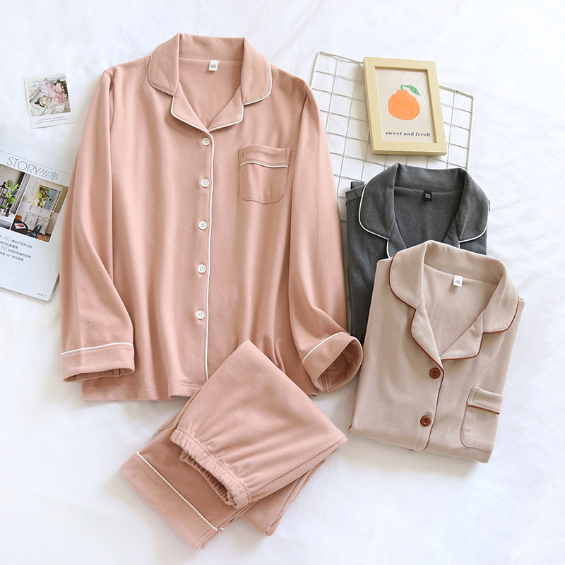 봄과 가을 커플 잠옷 긴 소매 세트 새로운 유행 남자와 여자의 가정 옷 가을과 겨울 카디건 외부 착용 가정스토어 가기
