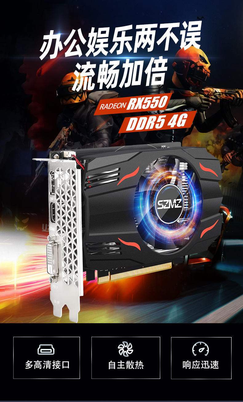 진샤크 RX550 DDR5 4G 그래픽카드 컴퓨터 데스크탑 독립형 그래픽카드