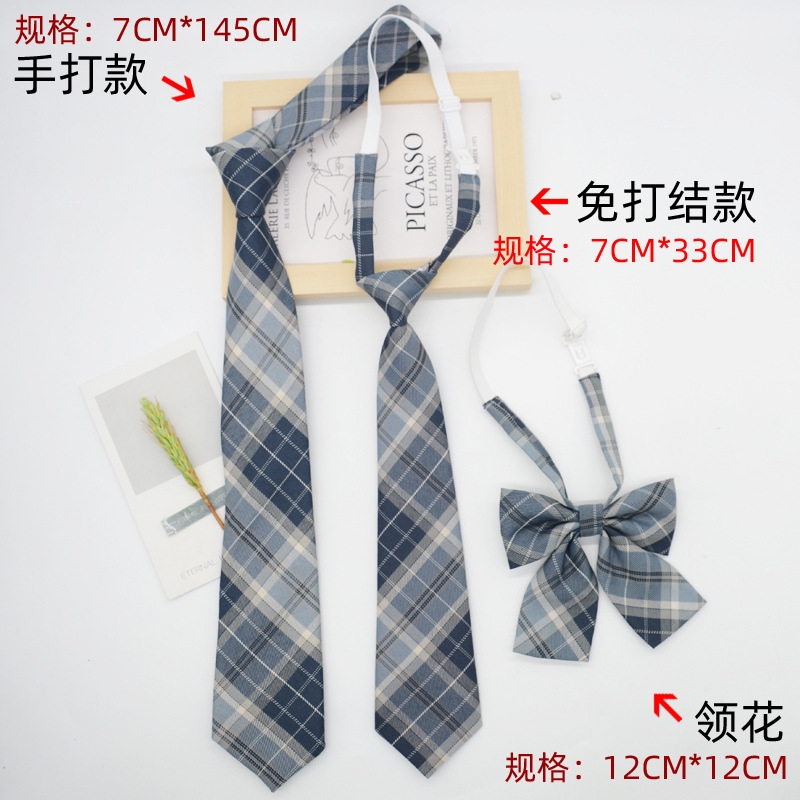 JK 넥타이 여자의 한국식 일본식 대학 스타일 녹색 야생 격자 무늬 핸드 타이 프리 교복 짧은 학생 패션