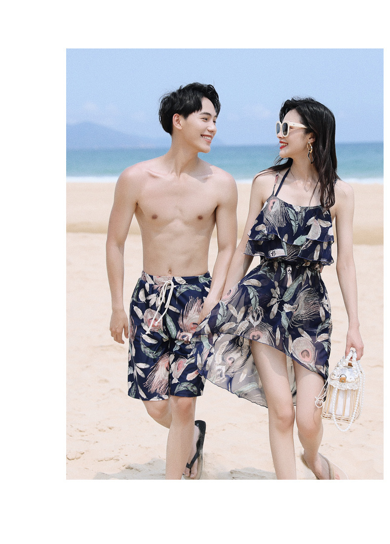 해변 해변 커플 수영복 2025 새로운 커플 모델 신혼 여행 비키니 세트 남성용 온천 수영복