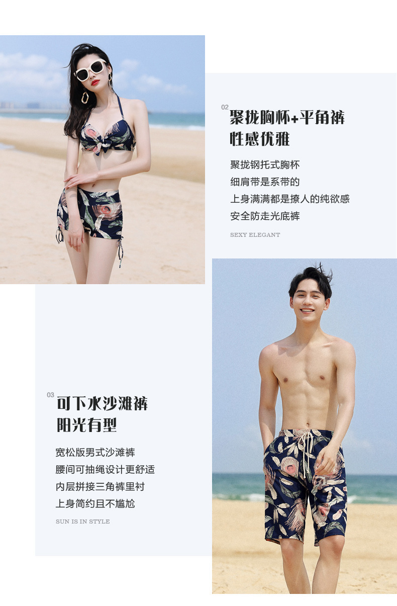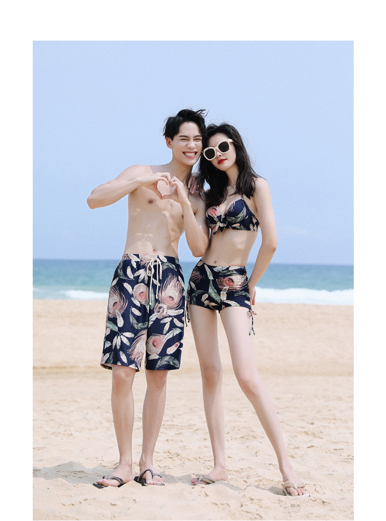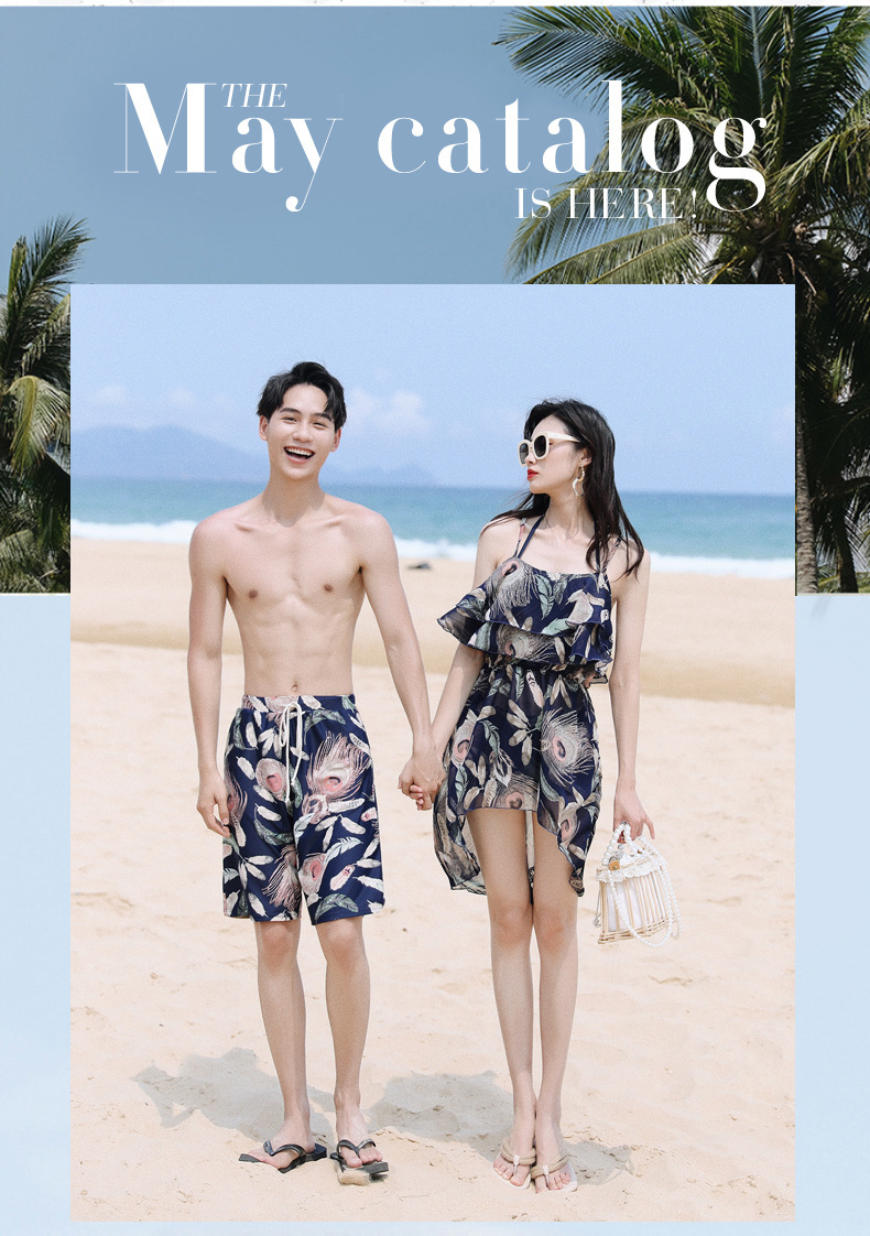 해변 해변 커플 수영복 2025 새로운 커플 모델 신혼 여행 비키니 세트 남성용 온천 수영복스토어 가기