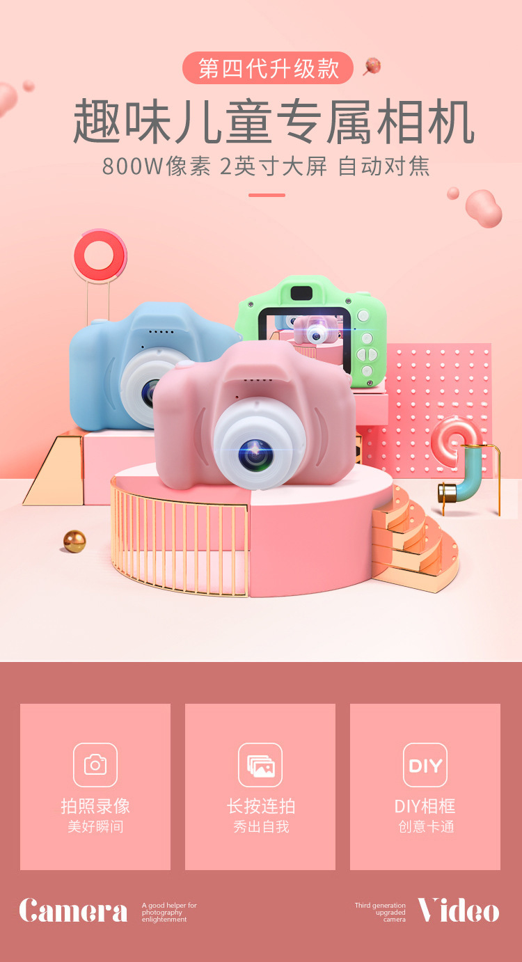 크로스 보더 X2 어린이 미니 디지털 카메라 2 인치 화면 HD 스포츠 미니 사진 촬영 가능 비디오 생일 선물스토어 가기