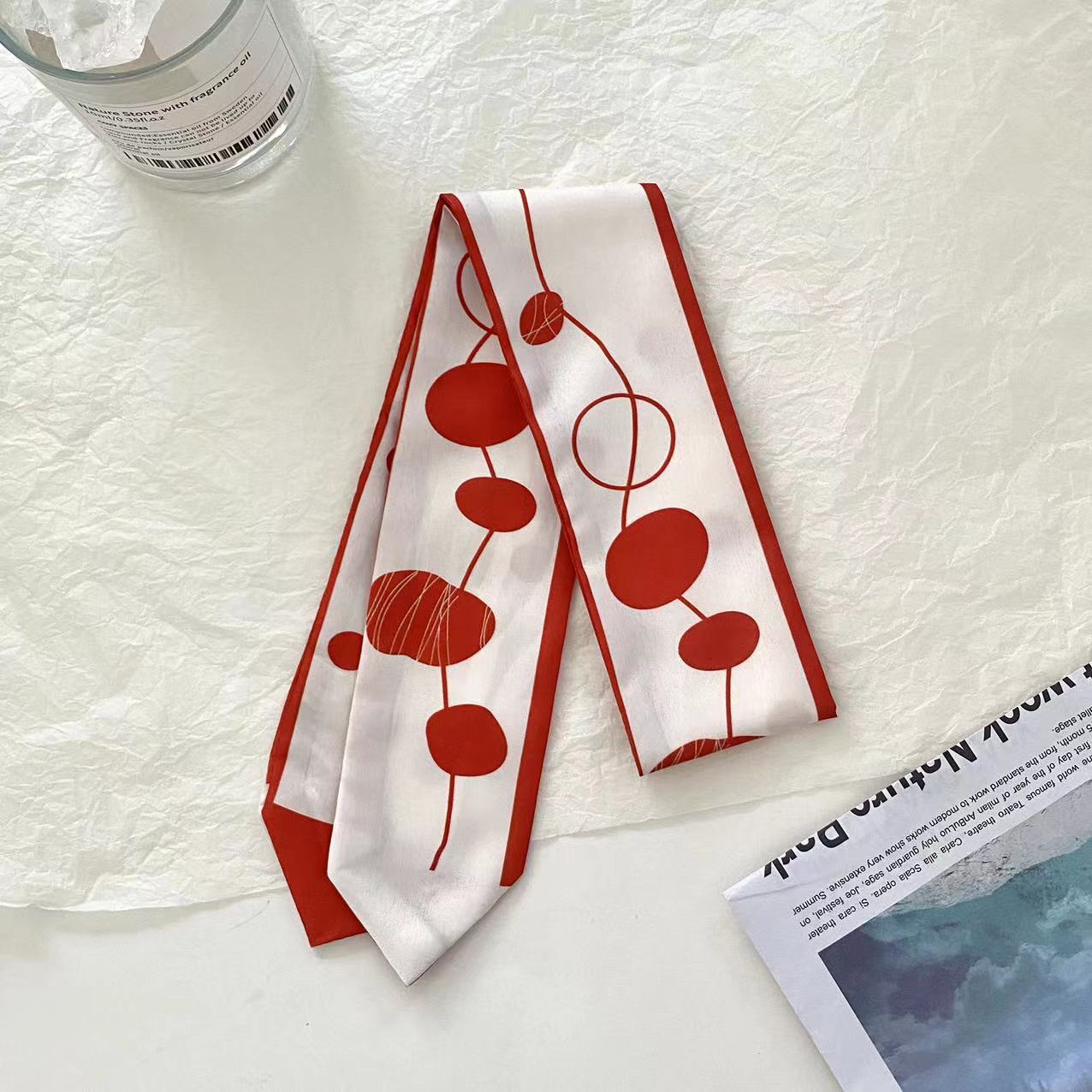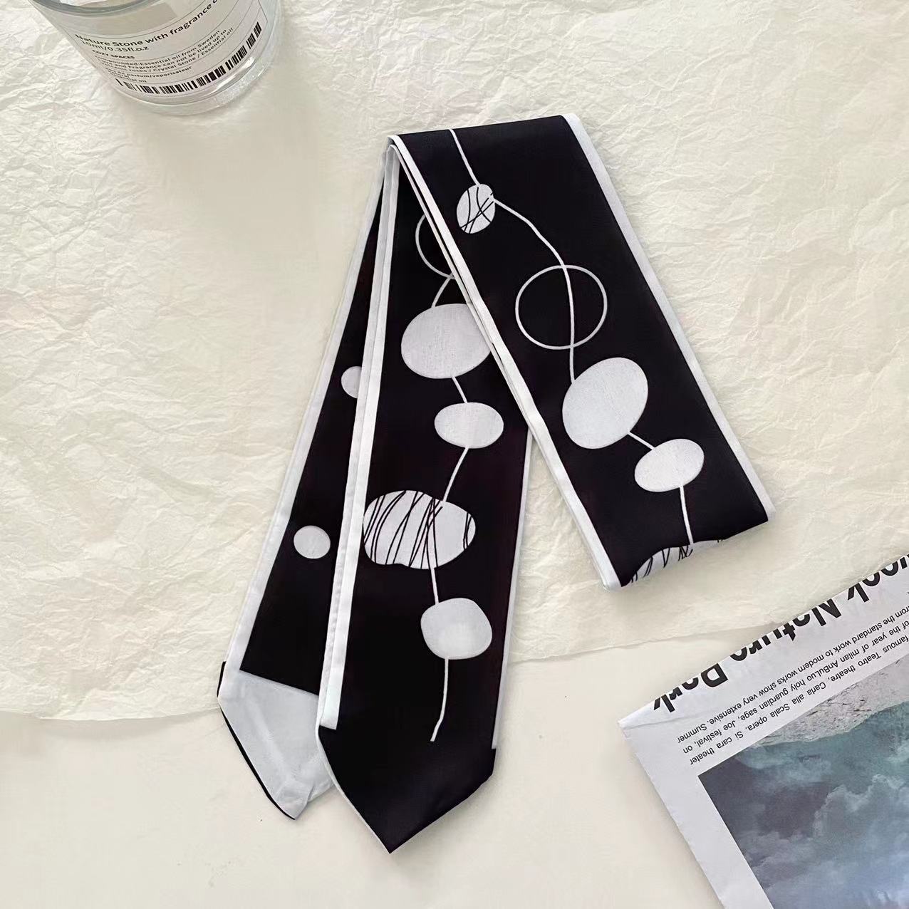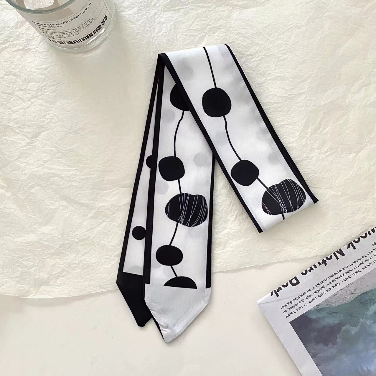 여름 신상품 긴 모든 매치 단색 타이업 백 인터넷 연예인 신상품 장식 경사 스카프 한국식 여성용 물방울 무늬 작은 실크 스카프