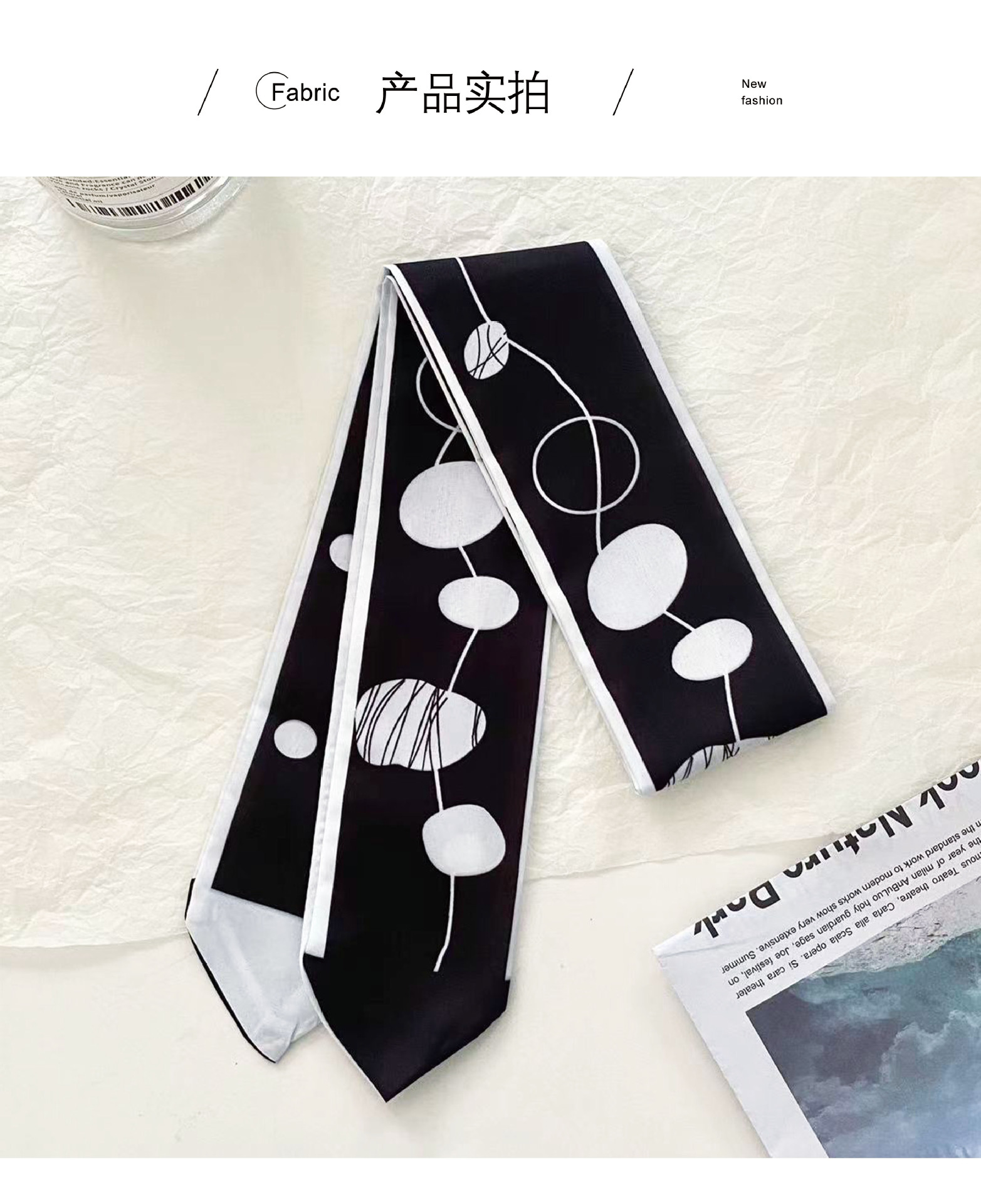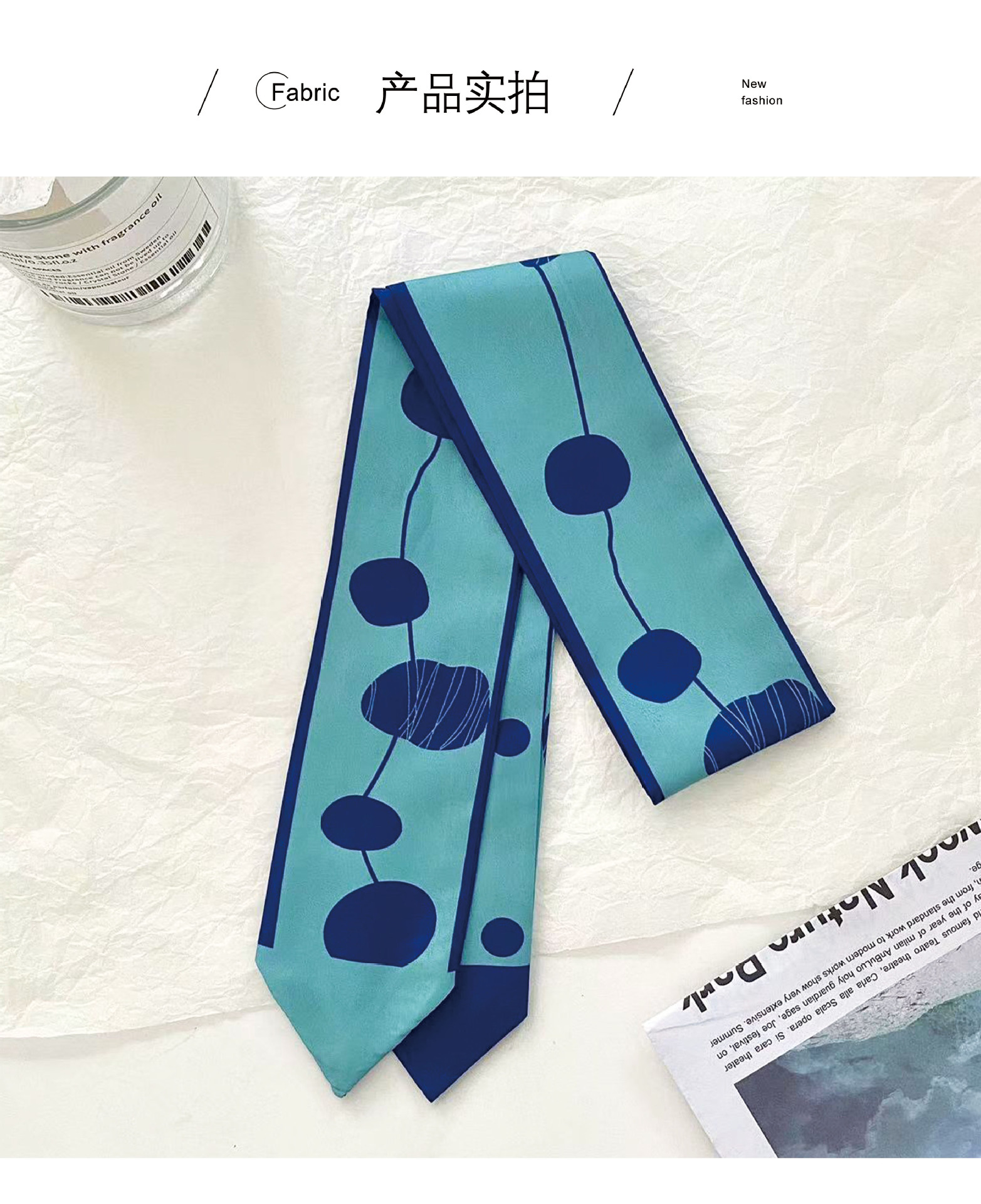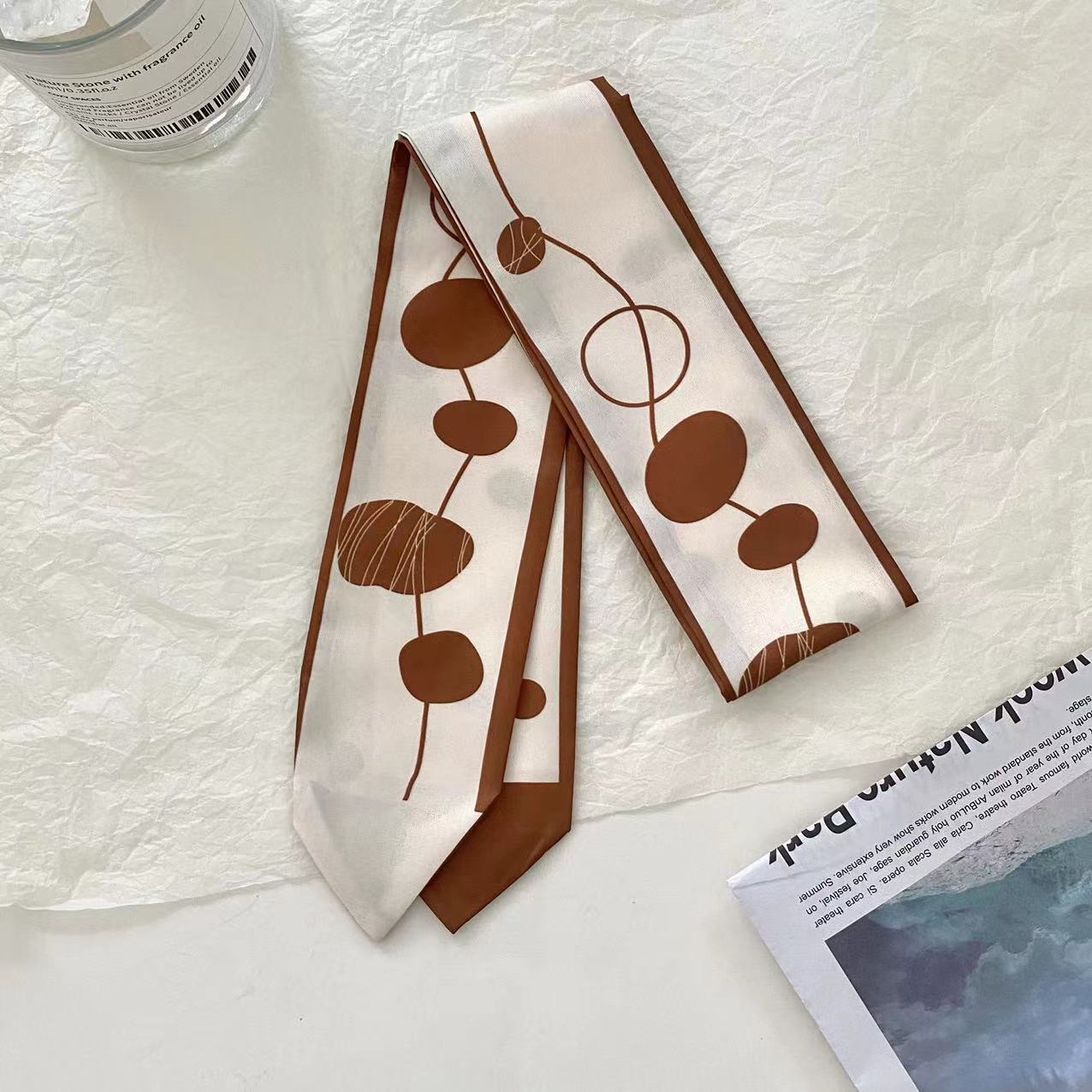 여름 신상품 긴 모든 매치 단색 타이업 백 인터넷 연예인 신상품 장식 경사 스카프 한국식 여성용 물방울 무늬 작은 실크 스카프