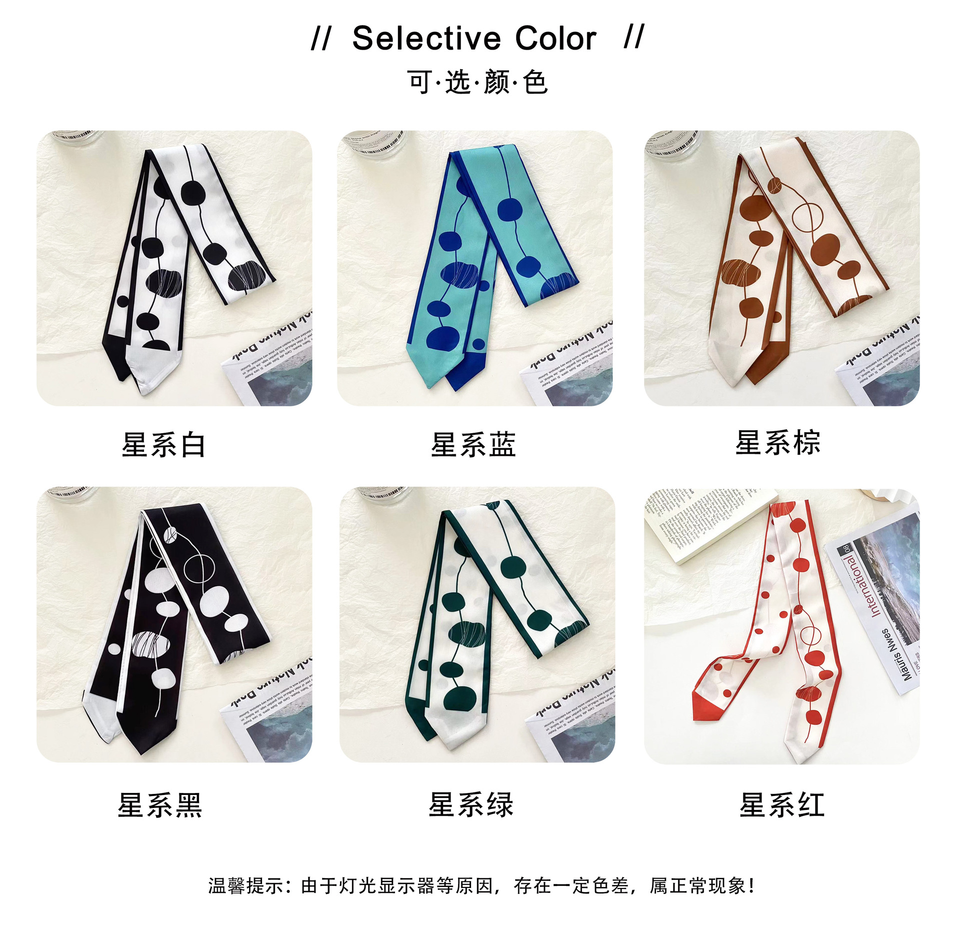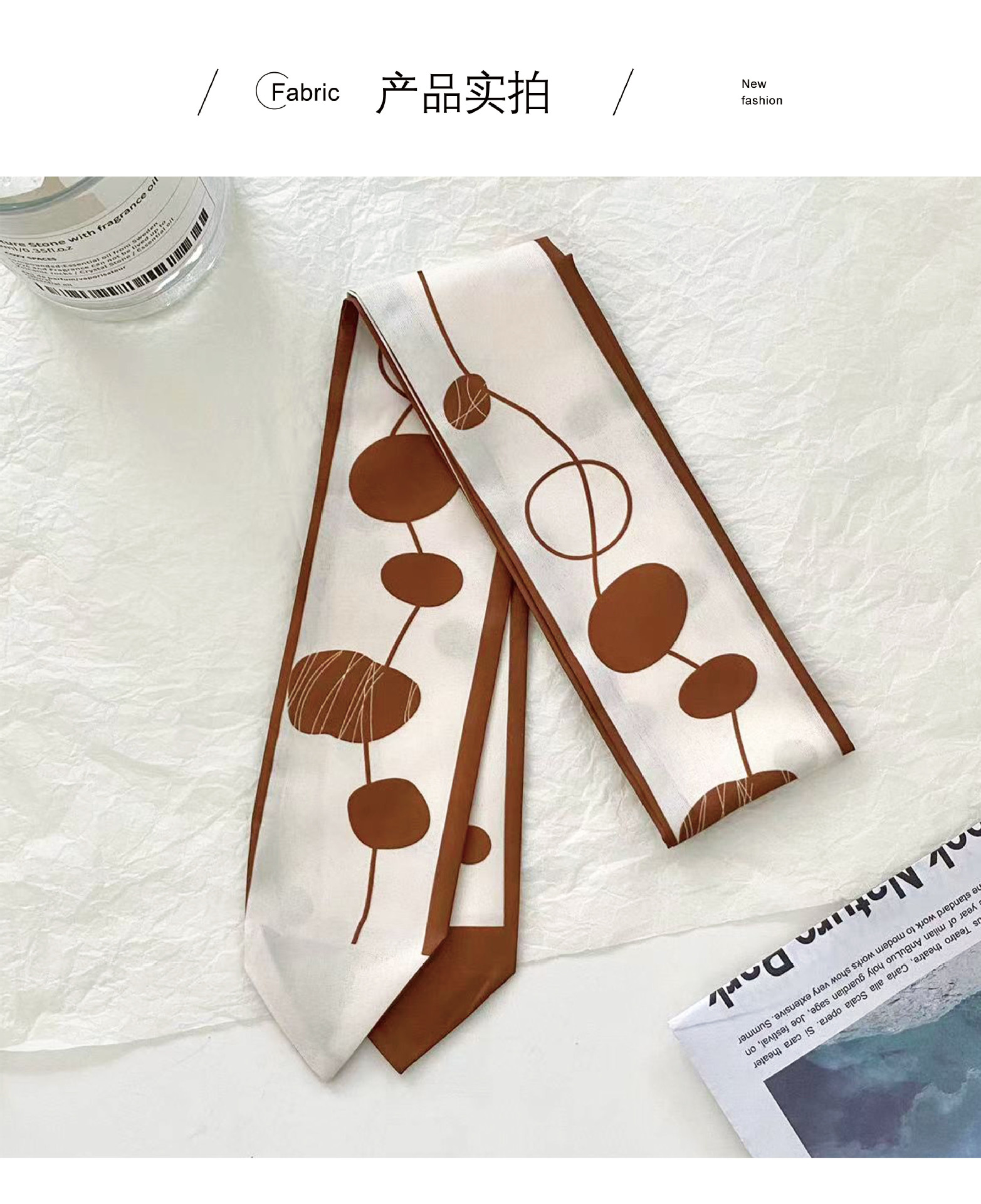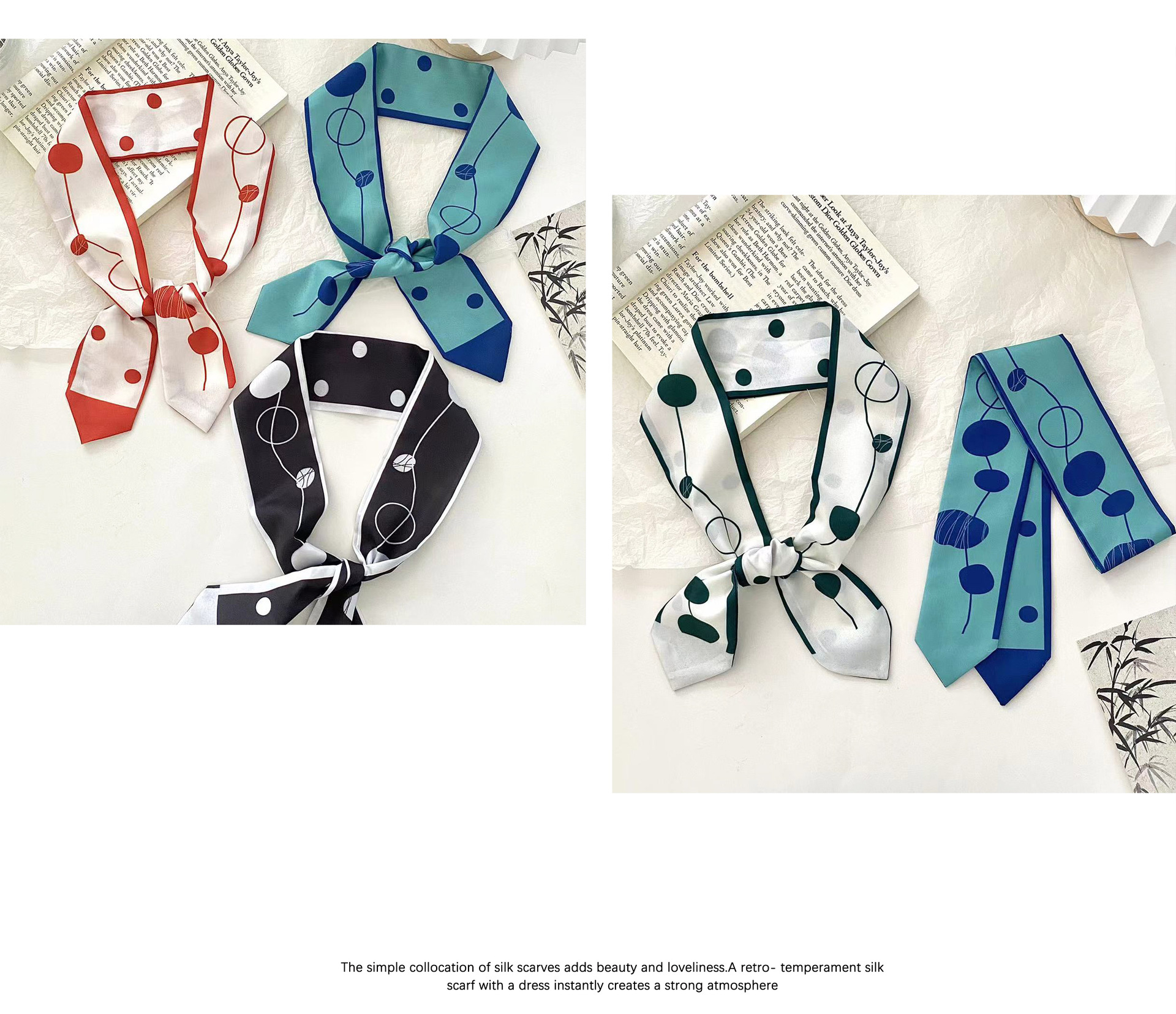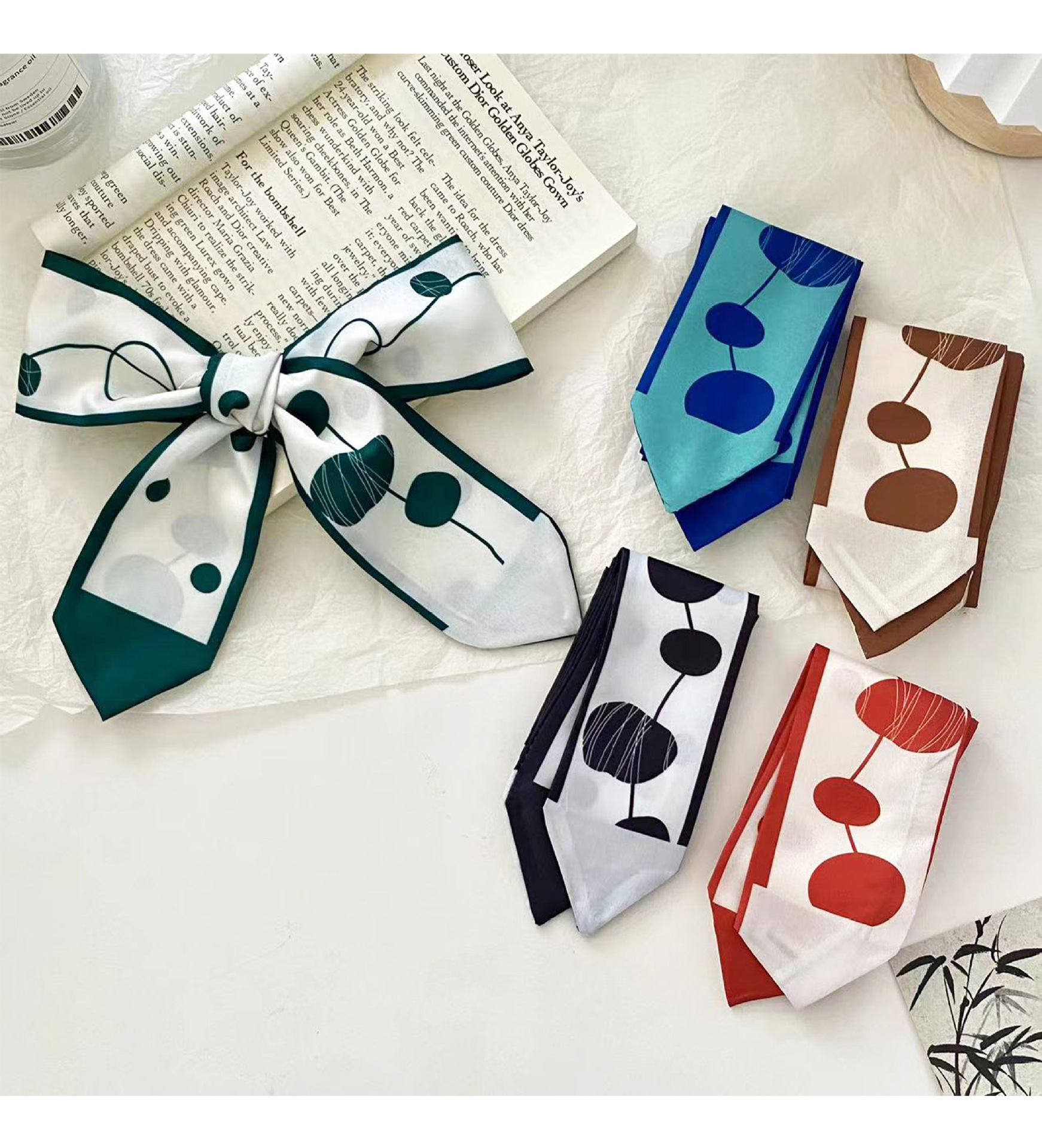 여름 신상품 긴 모든 매치 단색 타이업 백 인터넷 연예인 신상품 장식 경사 스카프 한국식 여성용 물방울 무늬 작은 실크 스카프스토어 가기