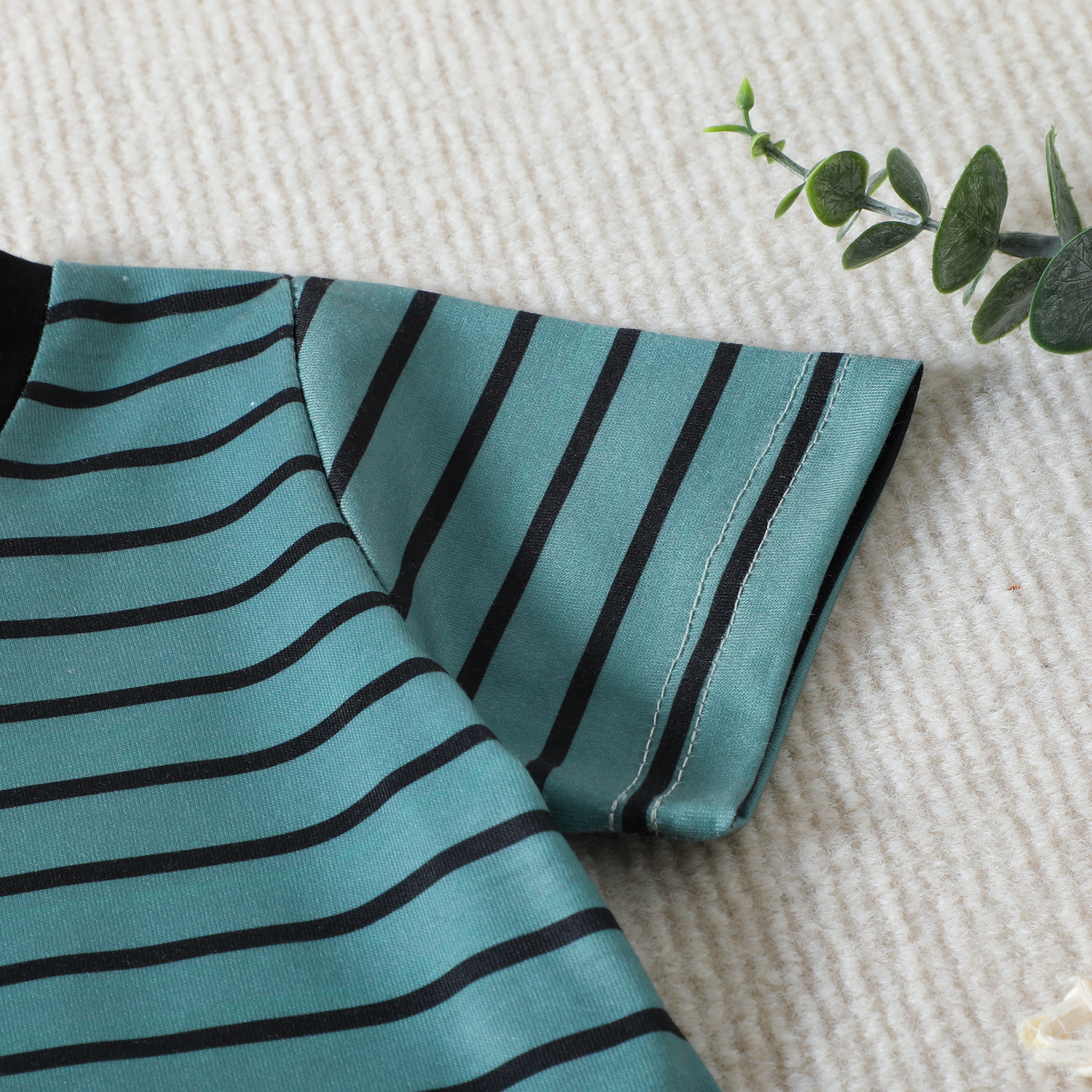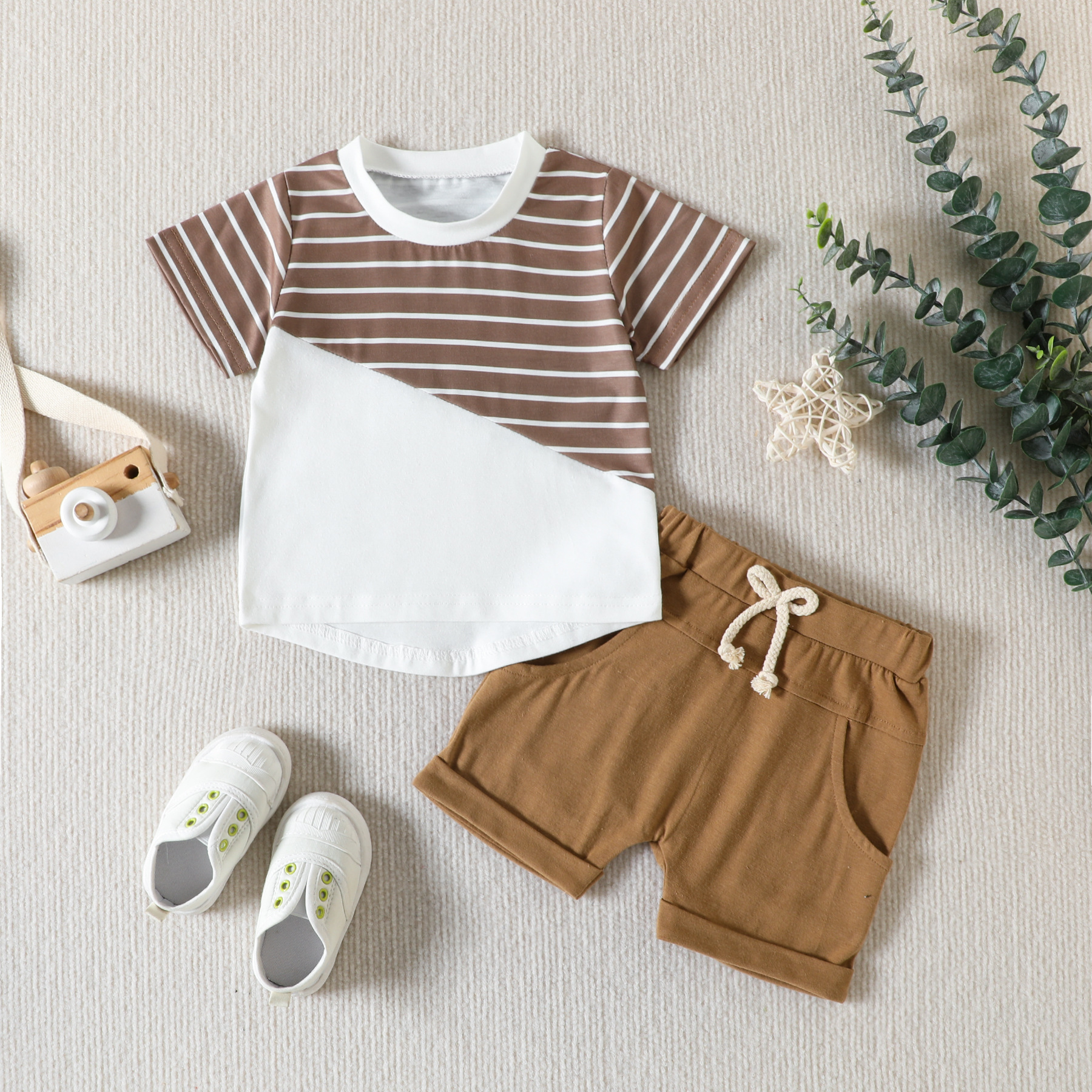 2023 여름 아기 반팔 가정복 세트 소년 아기 캐주얼 스트라이프 반팔 티셔츠 반바지 투피스 세트스토어 가기