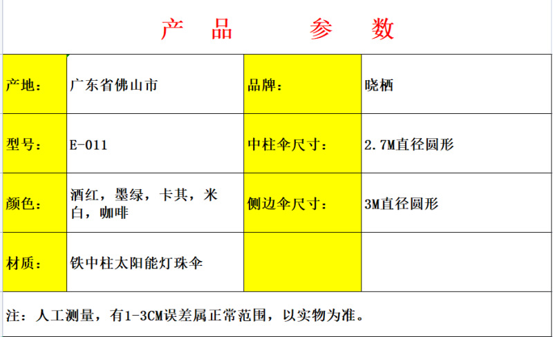 • 카키 2.7M 중간 기둥 우산 (20kg 물 탱크 포함)