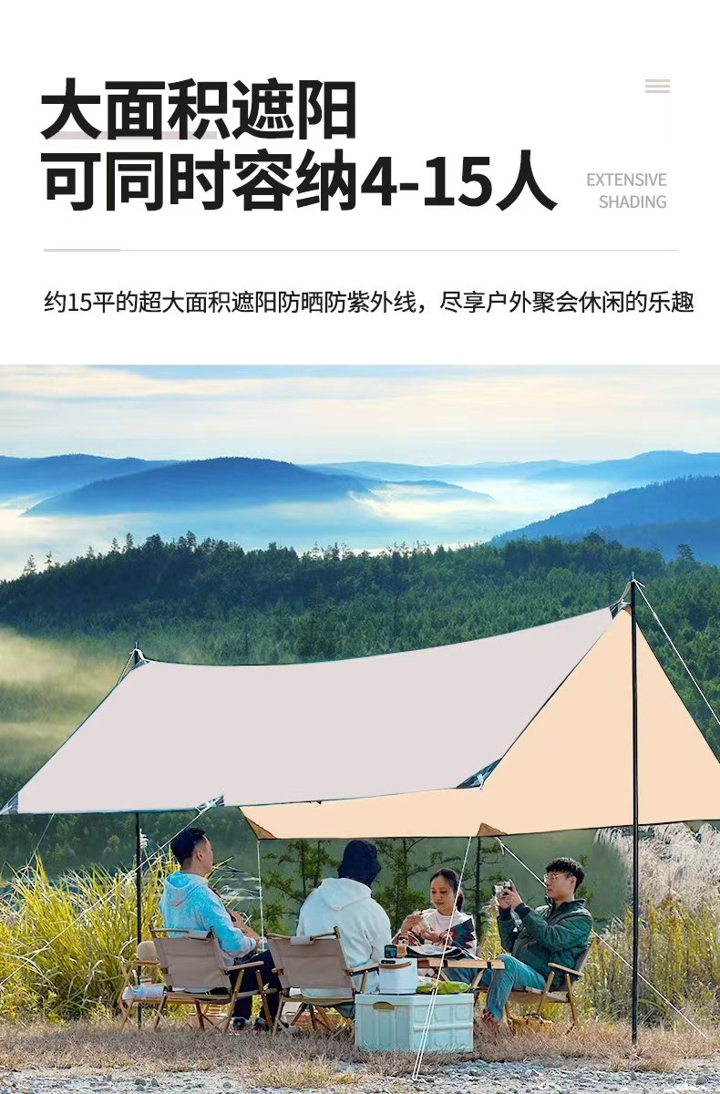 야외 캠핑 캐노피, 실버 캐노피, 두꺼운 방수, 자외선 차단, 휴대용 캠핑 사각 캐노피