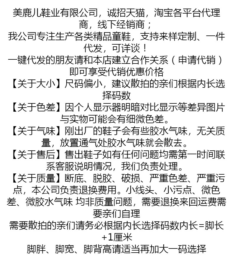 尺码偏小,请参照内长选择码数,内长=脚长+0.7~1厘米,脚胖脚宽脚背高请适当再加大一些拍。