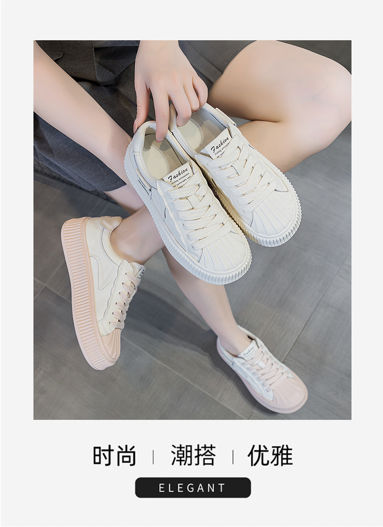 봄 2024 새로운 흰색 신발 여성 정품 가죽 두꺼운 단일 높이 증가 유행 쉘 헤드 보드 신발 레이스 업 캐주얼 스니커즈