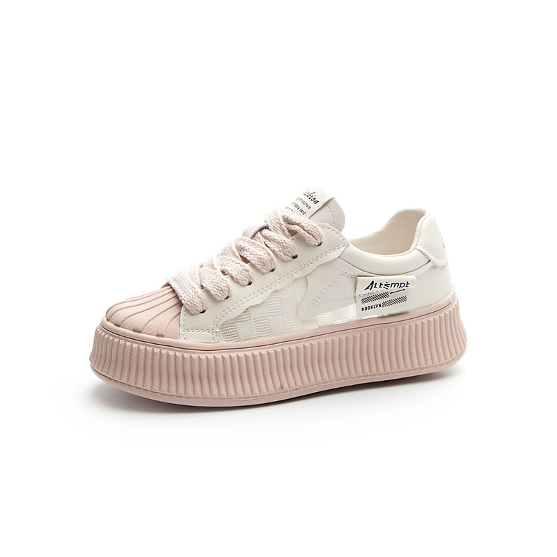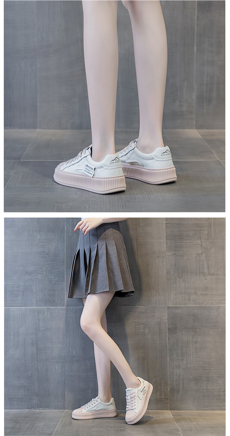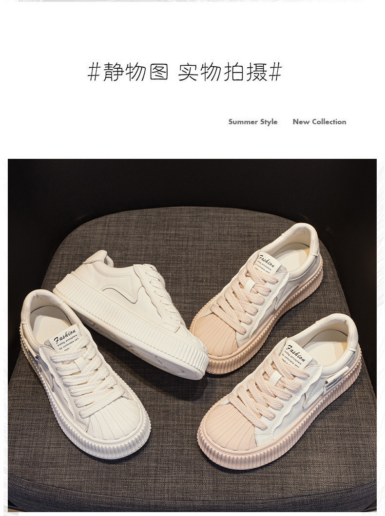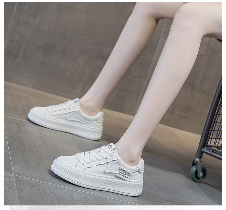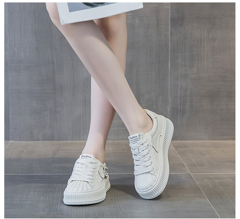 봄 2024 새로운 흰색 신발 여성 정품 가죽 두꺼운 단일 높이 증가 유행 쉘 헤드 보드 신발 레이스 업 캐주얼 스니커즈스토어 가기