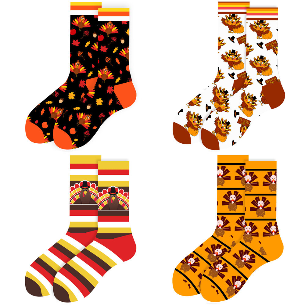 아마존 가을과 겨울 새로운 추수 감사절 여성 양말 터키 양말 호박 단풍잎 유행 양말 모든 경기 거리 남성 양말스토어 가기