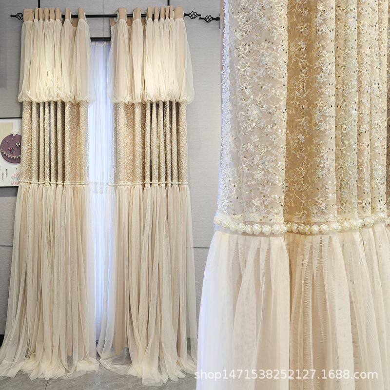 아름다운 작은 신선한 한국 바느질 커튼 공주 침실 음영 따뜻한 소녀 방 바닥에서 천장까지 창 부동 커튼 도매스토어 가기