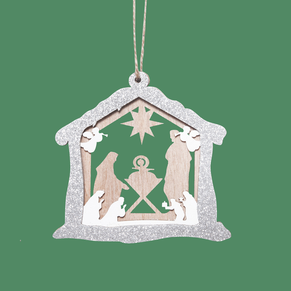 新款圣诞银色房子挂饰 包装尺寸13*13*0.5cm 单品重量19g