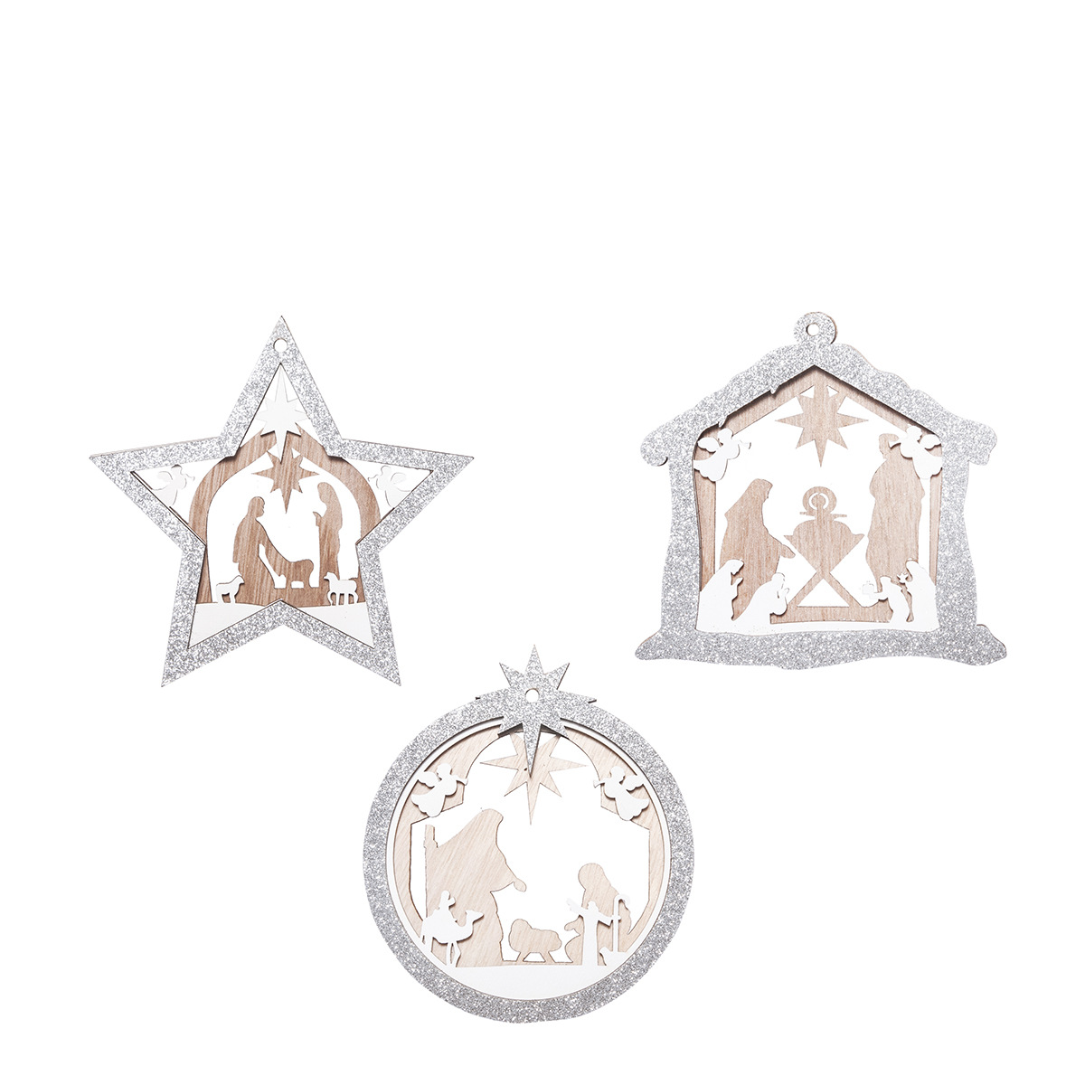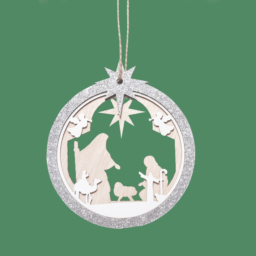 新款圣诞银色圆形挂饰 包装尺寸13*13*0.5cm 单品重量16g