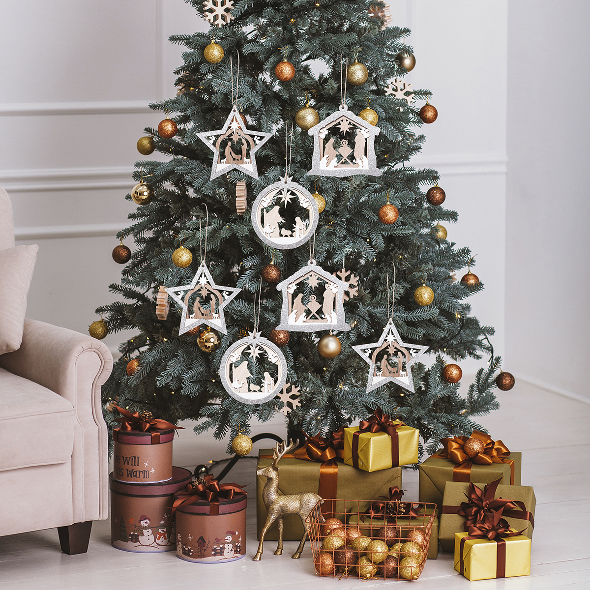 국경 간 크리스마스 장면 장식 다섯개 별 나무 크리스마스 트리 펜던트 화환 교수형 장식품 출생 장식 기념품스토어 가기