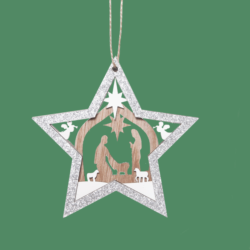 新款圣诞银色星形挂饰 包装尺寸13*13*0.5cm 单品重量12g
